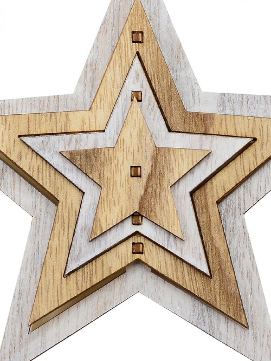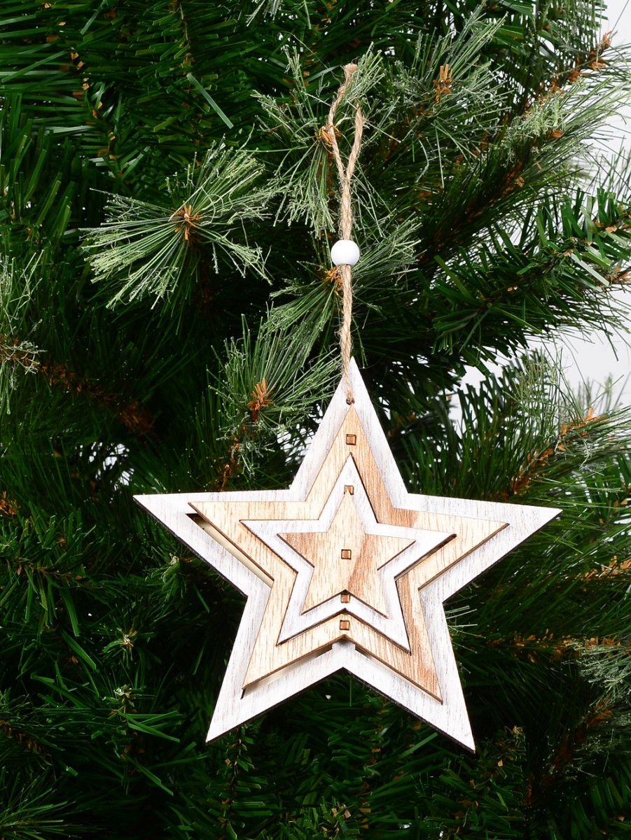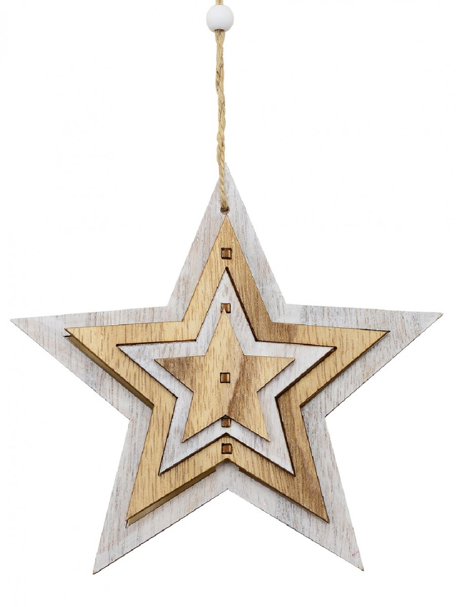 Though it is sold individually, this aesthetically pleasing Natural & White Layered Wood Star Hanging Decoration offers you the benefit of 4-in-1 stars decoration. There are four wood cut stars that are set into one another in such crafty manner achievable by only professional craftsmen.