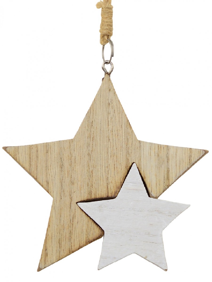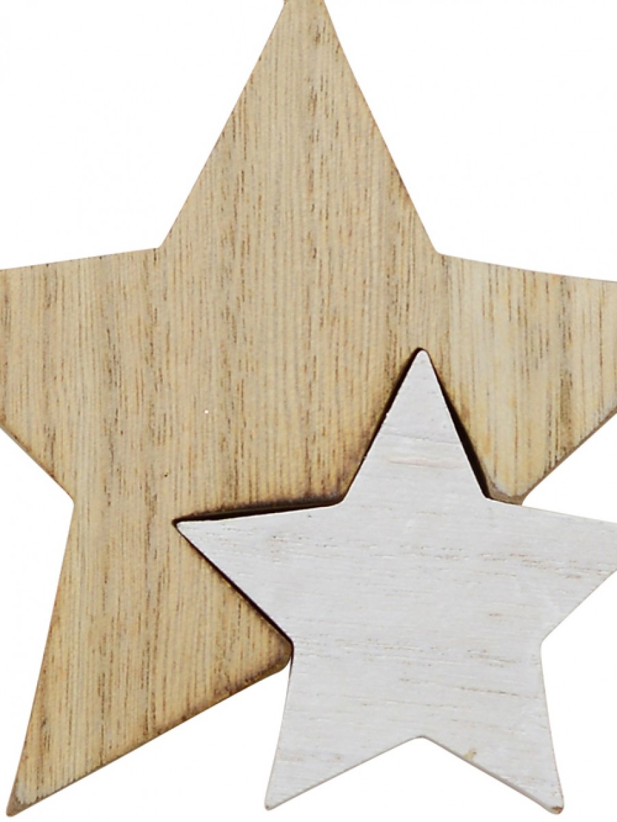 It is no news that ornamental objects with star shape are recurring motifs that is often employed in Christmas decorations. This is because stars are symbolic in the celebration of Christmas. Continue the tradition in this upcoming Xmas as you infuse this 2-in-1 hanging wooden stars into your decoration. There are two wooden stars both of which are made of wood but one is larger than the other. The larger wooden star which plays host to the smaller one retains its natural wood colour. The smaller wooden star however is embellished in the classic colour of white. This combination of white and wood cream-brown would liven up any living space when used in decorations.