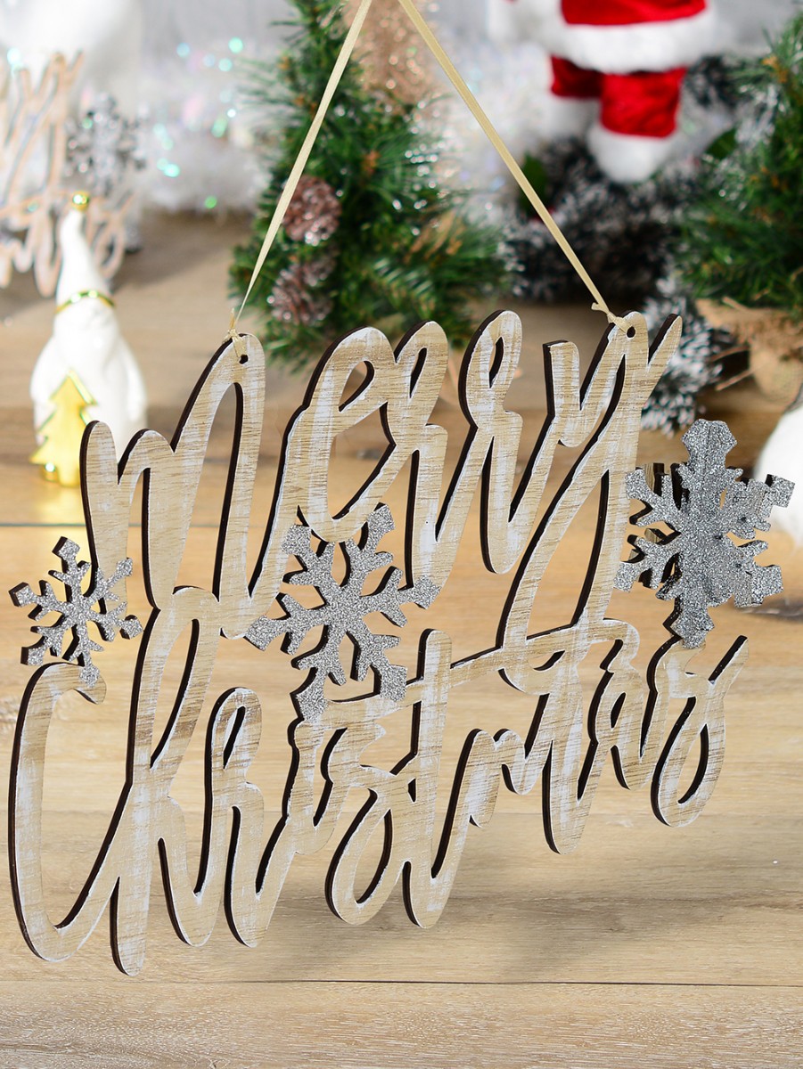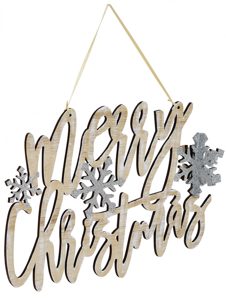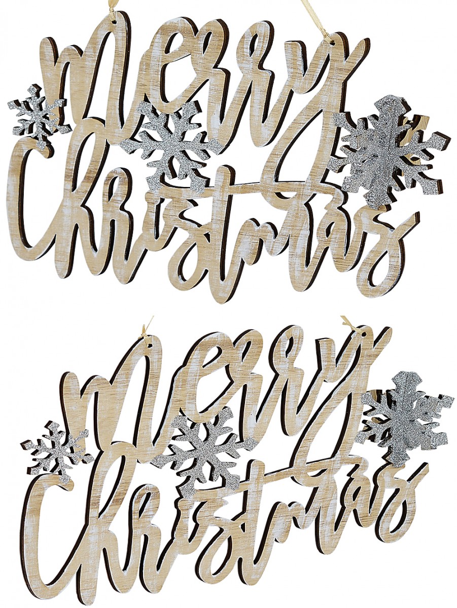 Paying tribute to breathtaking craftsmanship that magnifies the extravagancies' of wood in its textured appearance. Natural Wood Hanging Merry Christmas With Silver Glitter Snowflakes is a conversation piece on any wall or placed strategically over door knobs. Interestingly, adding depth and interest to lifeless walls is effortless with this novelty piece.