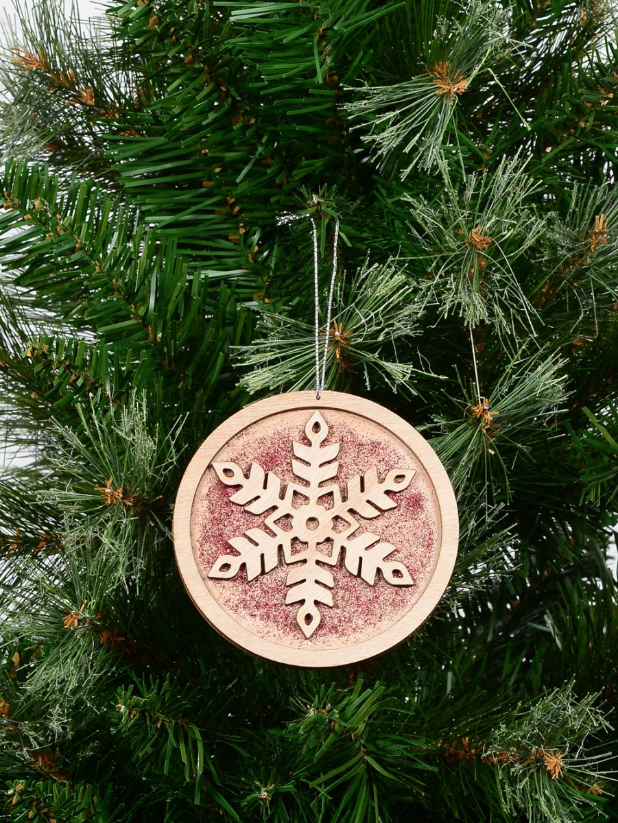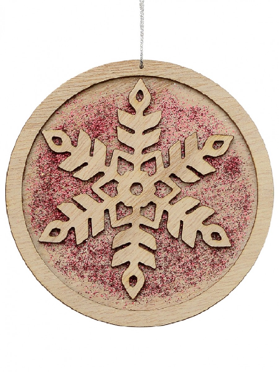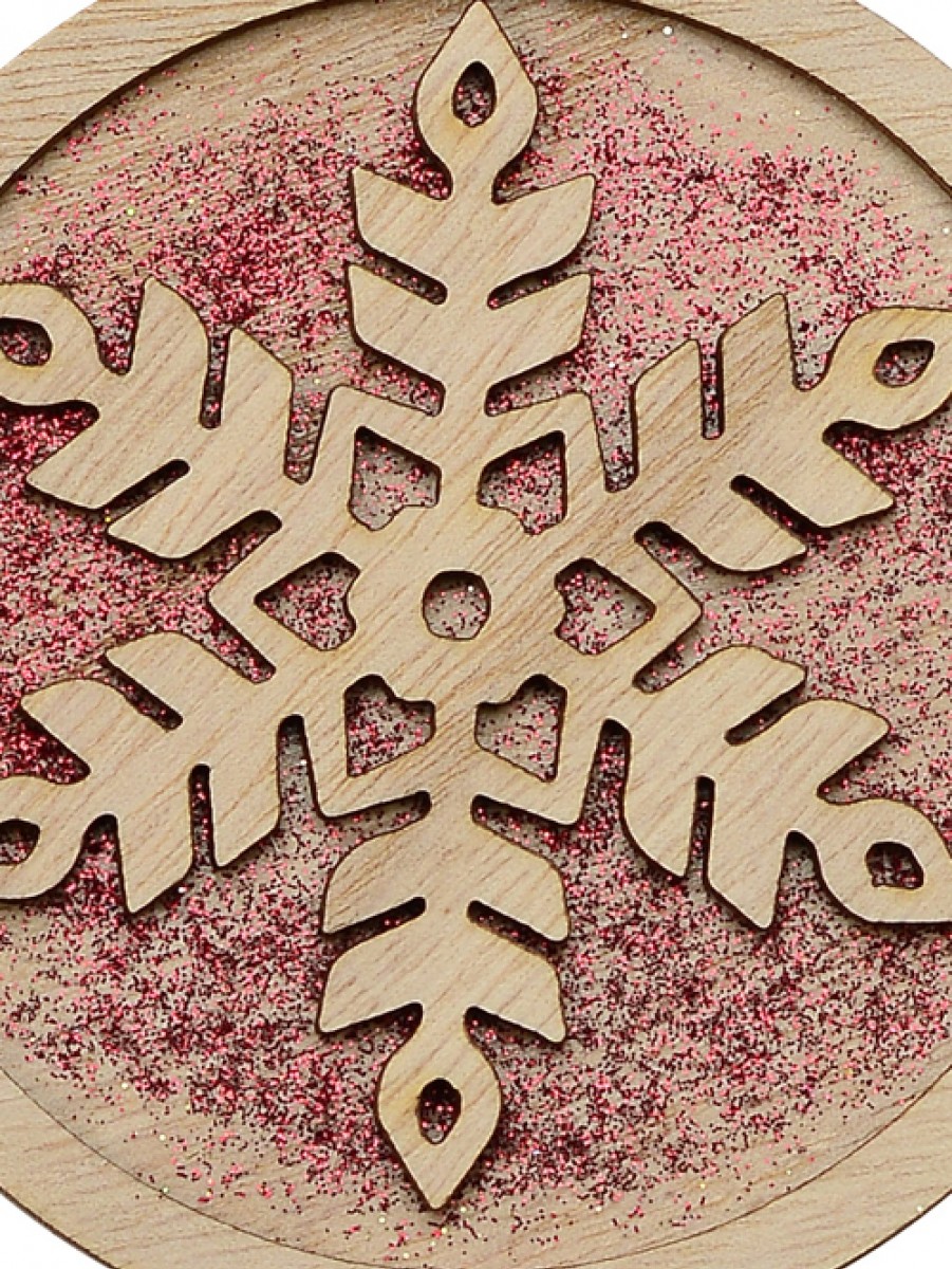 The Natural Look Wood Snowflake Medallion Hanging Decoration has a look and feel of originality because it is made from 100% natural wood. It exhibits such perfectly round shape and an intricately crafted snowflake design on the surface of the spherical shape. This snowflake design is dusted in a red coloured festive dust over a wooden brown background. It has a snowflake motif which depicts the winter element of snowfall. A silver coloured chain is attached to it so that you can hang it easily for whatever decorative purpose you have in mind. Please place your order in time before stock runs out.