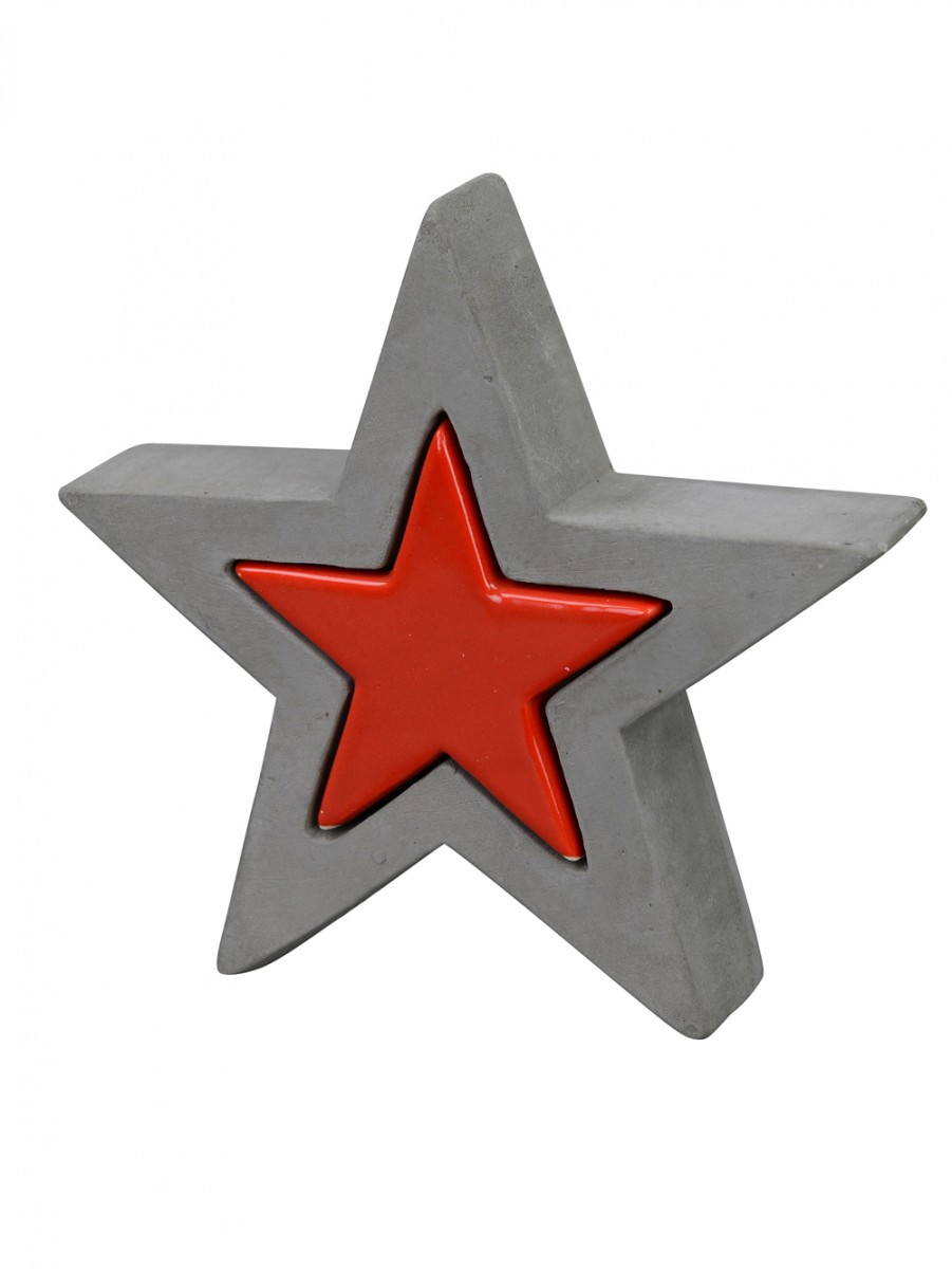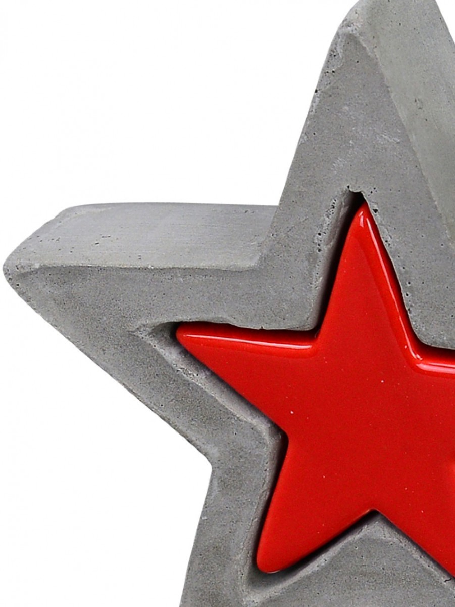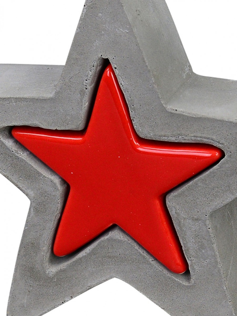 The outer grey concrete hollowed star is crafted in rustic fashion with a glossy red inner star that gives a splash of colour to this decoration. This is a newly introduced item that looks artistic and modern and will suit any contemporary or industrial theme. It is sold individually and is 20cm in length and breadth with a thickness of 4cm. Use it to create a welcoming atmosphere in your interior or add it to a Christmas scene along with other ornaments, some faux snow, red berries and holly or just by itself as a centrepiece.