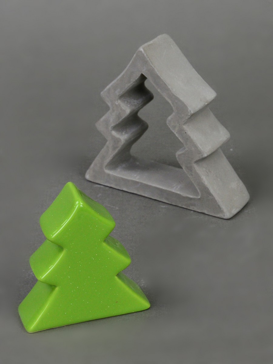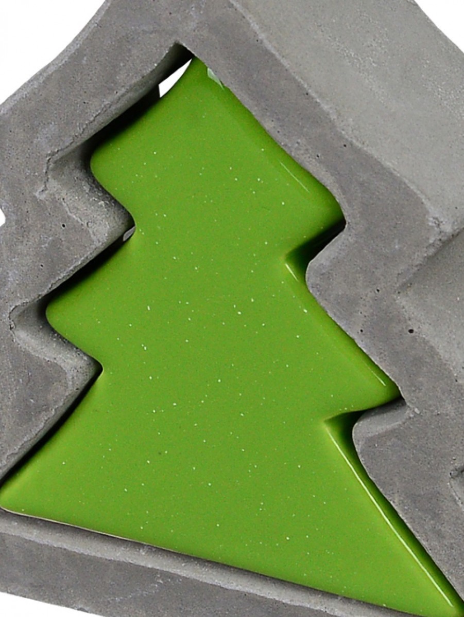 The beautifully carved matte concrete grey outer frame has a green ceramic tree nesting inside and the varying sizes add dimension and texture to the ornament. There is a light sprinkling of glitter over the inner green tree and this decoration can be displayed either nesting or separate as per your choice. Feel free to place the standing tree along with any of your rustic and primitive centrepiece or you may even place it in a nativity scene or in a Christmas display in the foyer. It will also look stunning sitting upon the fireplace mantel or entryway console table.
