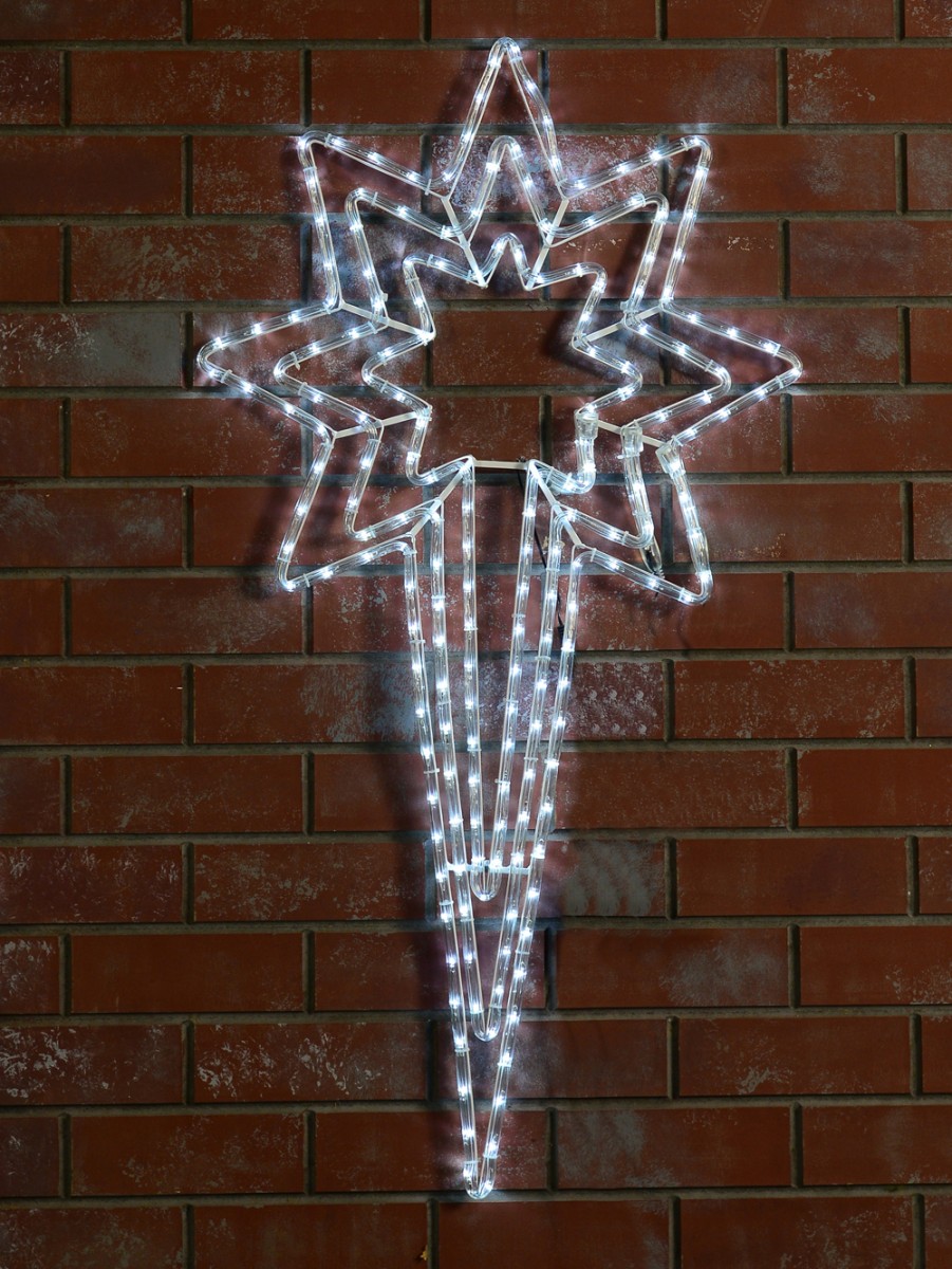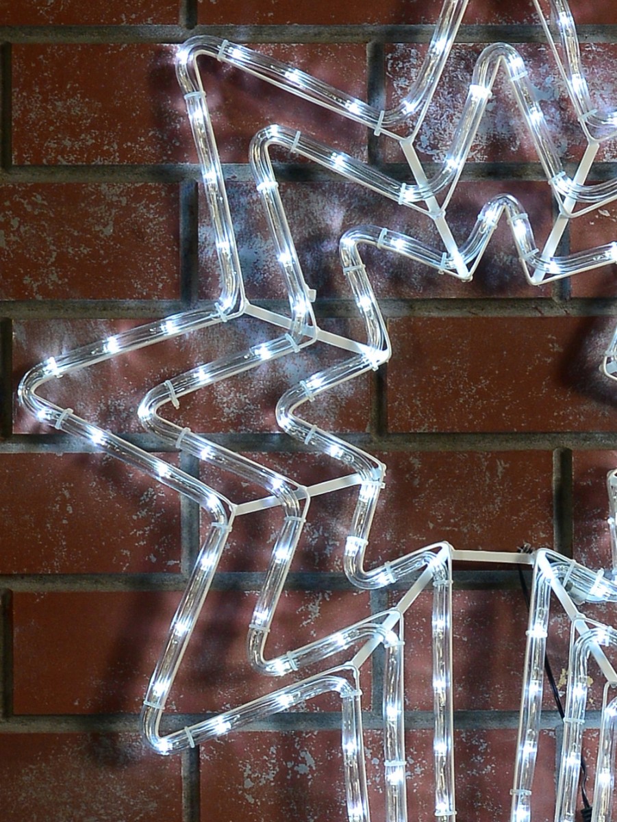 Made from flexible rope light attached a sturdy frame, this is a classic motif that will fit into any holiday decor. The clear rope tube of this display is made of 192 durable LED lights that are both energy efficient and long-lasting. The brilliant white colour of this North Star with 6-speed flashing functions including static is sure to dazzle your guests for many holiday seasons. Its 1.2m in height and 62cm in length with a long 5m lead cable that is mains operated and suitable for both indoor and outdoor use. This product is sold individually and complies with Australian safety and performance requirements.