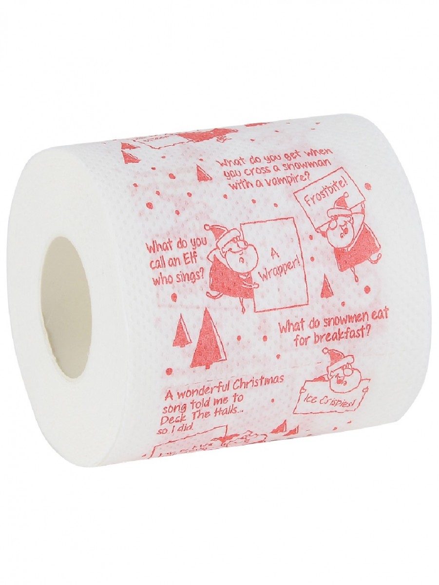 Introducing a roll of laughter for your bathroom breaks! This delightful creation brings the fun and joy of Christmas jokes right to your restroom. To add an extra dash of humour, each square features entertaining Santa cartoon images.