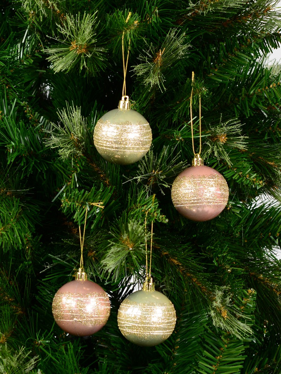 What if I tell you that you can infuse the beauty of precious pearls into your Christmas decorations? These two Pink & Champagne Pearl Baubles With Gold Glittered White Stripes can create that scenic decorative effect when you buy and use it for this Xmas decorations. Each has distinct ornamental effect on your decorative ambiance which is why you should have both on your Xmas tree.