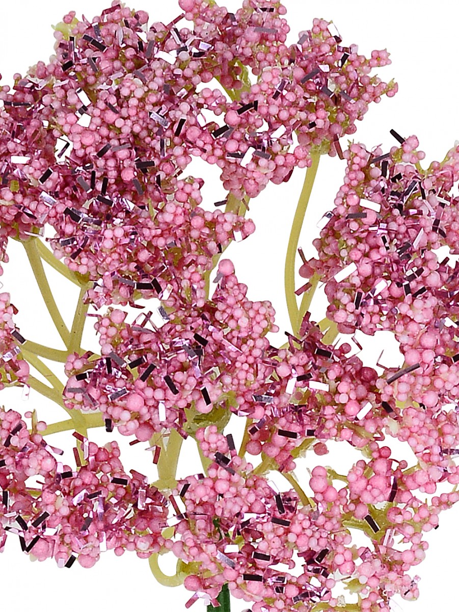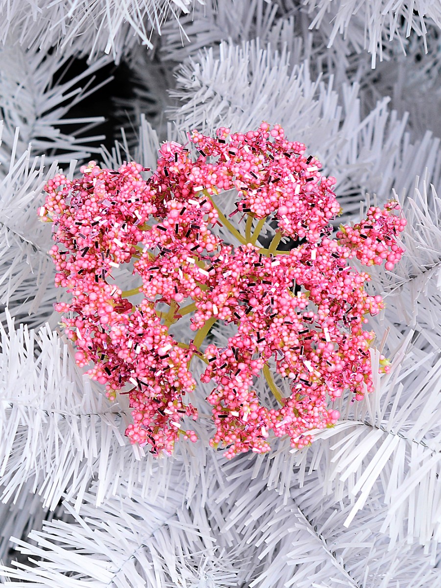The flower head showcases a captivating array of florettes made from tiny pink beads, artfully enhanced with shimmering pink tinsel flecks. This blend creates a spectacular visual reminiscent of the delicate beauty of the seseli libanotis or pink-tinged moon carrot, offering a whimsical yet refined touch to your Christmas decorations. The pink bouquet stem, adorned with these intricate beads and tinsel, delivers a radiant sparkle that is sure to catch the eye and bring a touch of magic to any room.