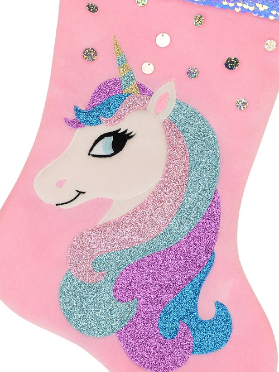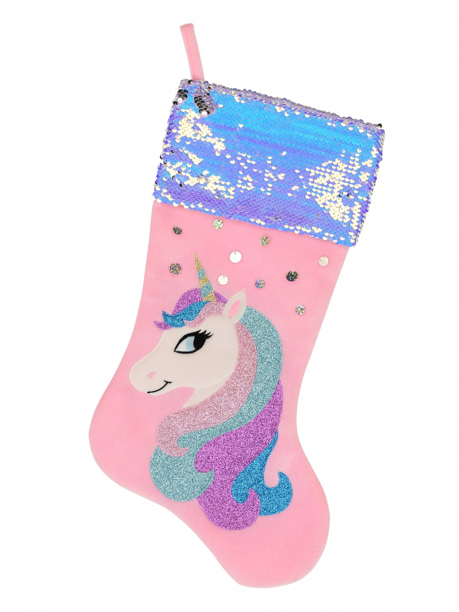 From decorating the Christmas tree and baking Christmas goodies, Christmas is the time of the year to look forward to having a great time. But, for kids, the most awaited part of Christmas is opening the presents Santa brought them. It is a Christmas tradition to keep Christmas stockings on the night before Christmas for Santa to place little gifts in them. Keeping this tradition alive, kids still hang Christmas stockings for little presents. With this in mind, why not change the traditional Christmas stockings into something more colourful that your child will love? This pink velvet stocking is perfect for your little girl. This Christmas stocking has a vibrant unicorn face with a beautiful glitter pastel colour mane in the middle, along with a shiny sequin mesh cuff. This unique Christmas stocking design is sure to make your kids happy with joy!