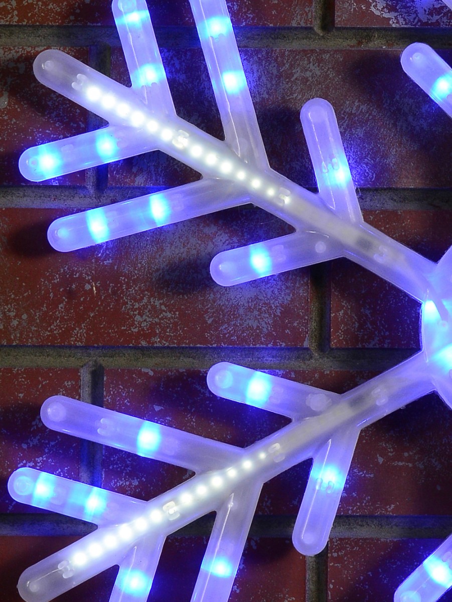 Celebrate the holiday season with this superb Plastic Tube Snowflake that will give your surrounding a dreamy magical look at this seasonal time of year. This lovely festive design motif measures total 61cm x 61cm x 61cm and its best features are the multiple light options of either cool white or blue light or a mix of both the light colours which will leave you spoilt for choice!