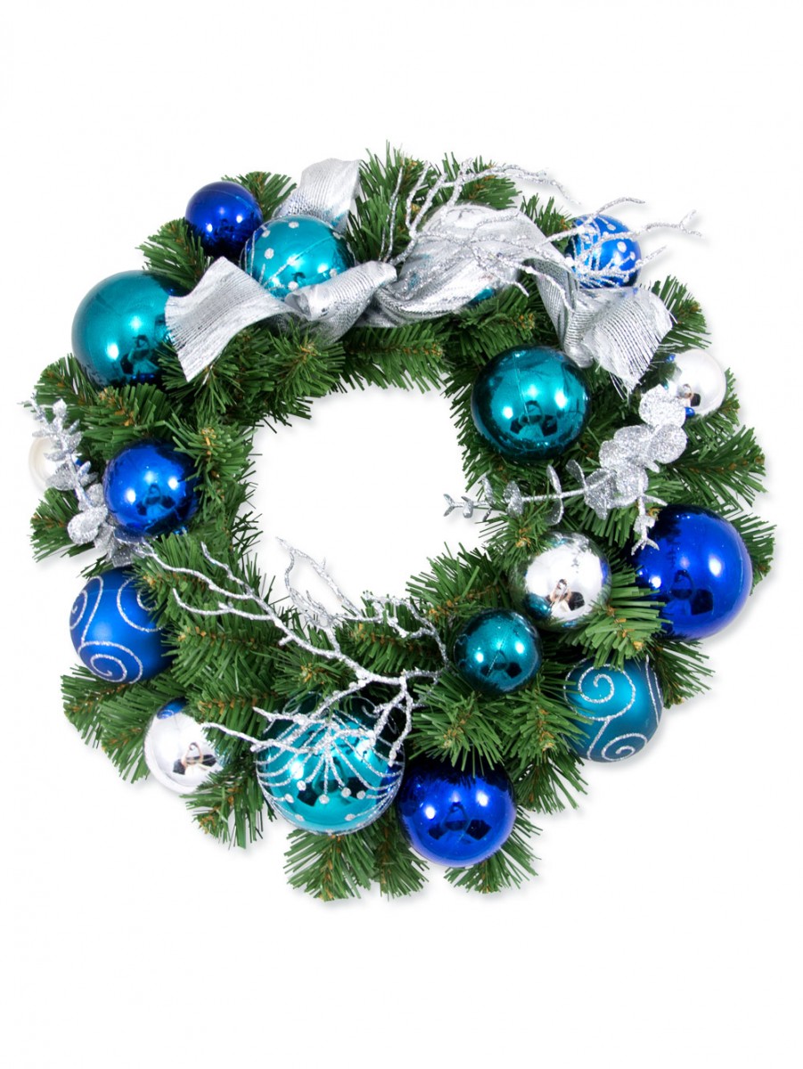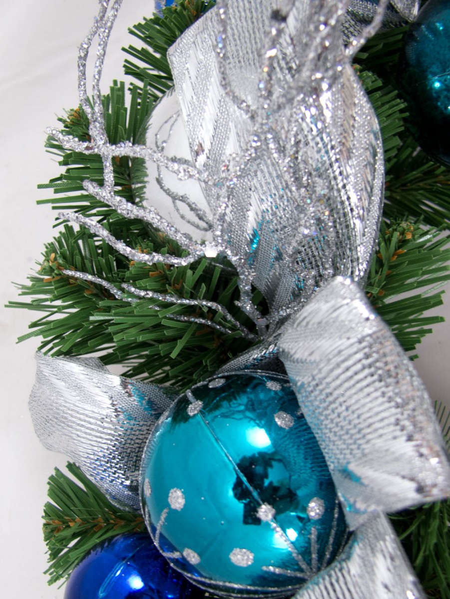 Wreaths have a long history that date back all the way to Greco-Roman times and it's no surprise they've stayed around so long considering how beautiful they are and how easy they are to display. This Pre-Decorated Wreath is both gorgeous and easy to hang on your front door, above your mantle, over a doorway or anywhere else that needs a burst of color and Christmas cheer. The green branches are formed into a wreath and are decorated with blue and silver round ornaments of varying sizes, designs and finishes. Silver glitter twigs and silver ribbon are woven in between the baubles. As it comes already decorated for you, all you have to do is unpack it, fluff it up a bit and hang wherever you desire. Want even more lovely Christmas wreaths? Check out the Christmas Warehouse site for a variety of others in different styles.