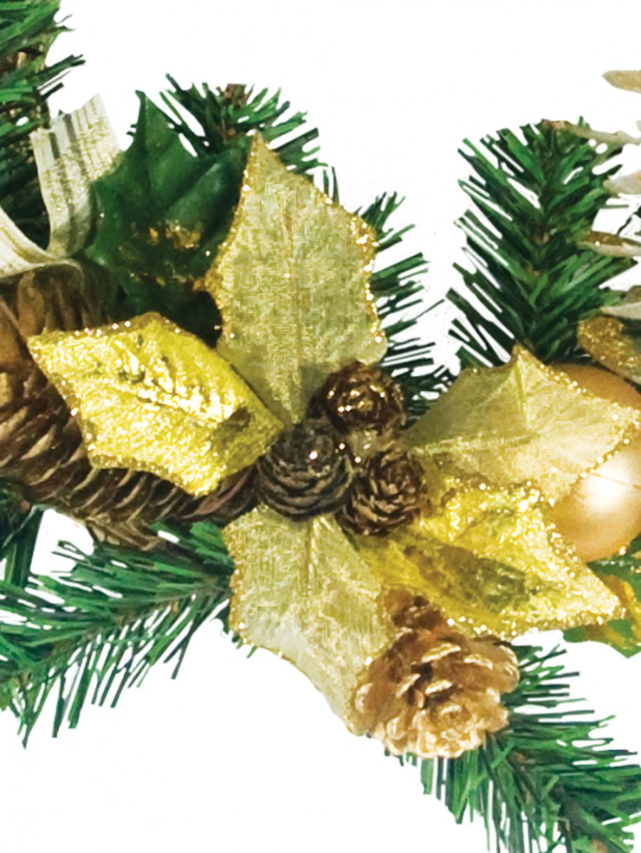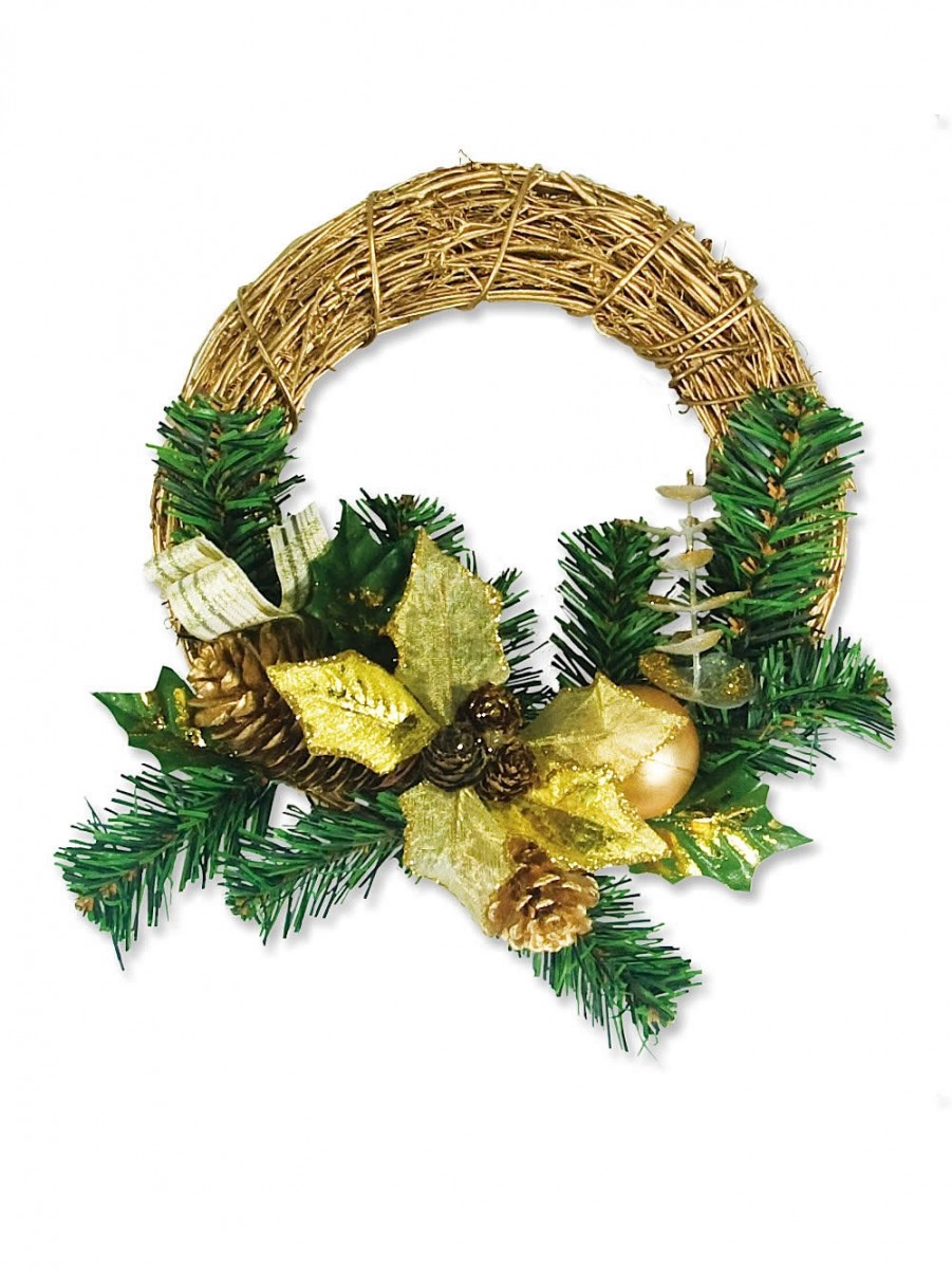 Christmas wreaths are great decorations. They come in different sizes and designs, and as such can be used in a variety of decorating purposes. The Wreaths - Pre-Decorated With Twig, Tartan Ribbon & Assorted Decorations is about 24cm, making it wide enough to be hung in windows and doors for a more welcoming look and appeal. However, if you happen to have a tall Christmas tree in your homes or business establishment, you can also hang this simple wreath on it to give it that quaint and charming look. The wreath is made of a set of twigs entwined together to form the ring. It also comes with green pine needles, lush and appearance that contrasts with the dry twigs in the ring. It also has gold leaves of tartan ribbon with gold pine cones for a shiny and extravagant look. Whether you are planning to put them on trees, doors, windows, or walls, you would do well by ordering a few of this wonderfully simple and quaint Christmas decoration.
