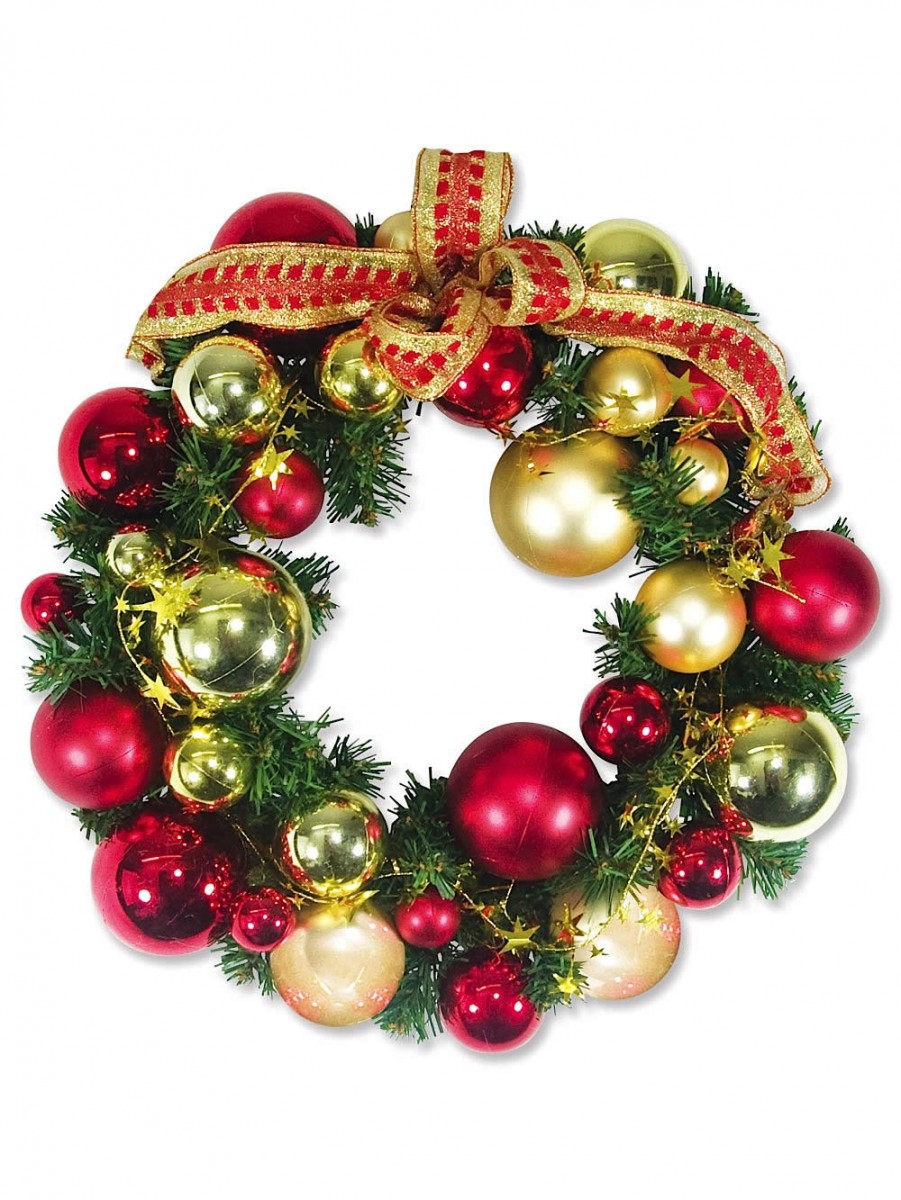 Making wreaths from freshly gathered ivy and other creeping plants would be a nice thing to do during Christmas. But it just takes so much effort and time. It is a good thing they have made the Pre-Decorated Red & Gold Bauble Wreath With Bow - 38cm. This wreath is very much like others except that you would not have to spend hours thinking about how to decorate it. This circular pine garland measuring 38cm in diameter features red and gold balls in various shades and sizes. Besides that, a thin, metallic ribbon with tiny golden stars are wired around the wreath giving the whole thing a beautiful glow. A shimmery red and gold ribbon, measuring about an inch thick, is knotted in the middle of this Christmas circlet. If you have a huge Christmas tree, a few pieces of this can be hung in certain points on the tree. But this would look great pegged on the doors of your rooms inside the house.