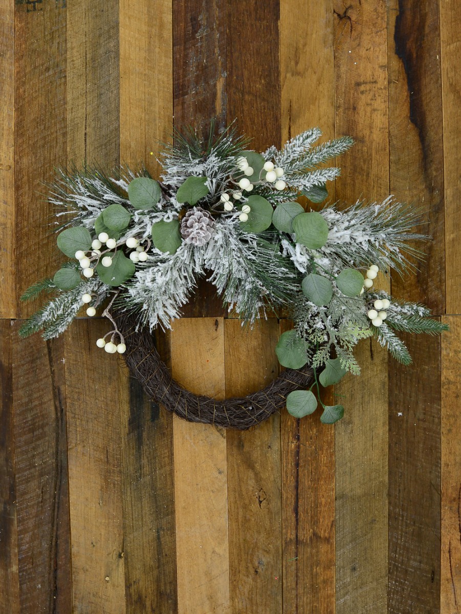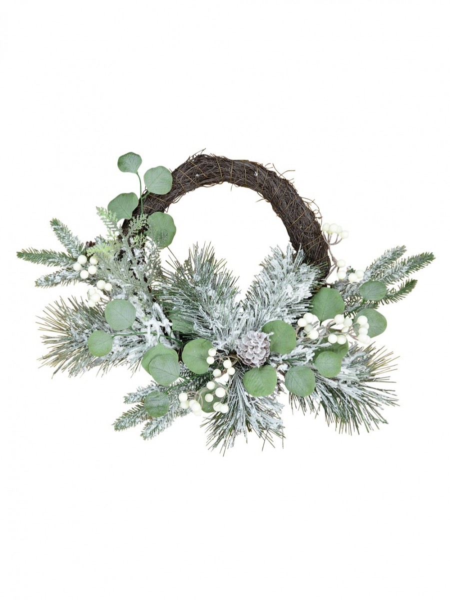 Wreaths are woven flowers that are especially used in festive occasion as a mark of honour being bestowed on an individual whether living or dead. They are often colourful and are sometimes hung on the recipient's neck. This Pre-Decorated Wire Spun Winter Wreath With Mixed Flocked Foliage however, is a winter themed wreath specifically meant for the decorating living spaces.