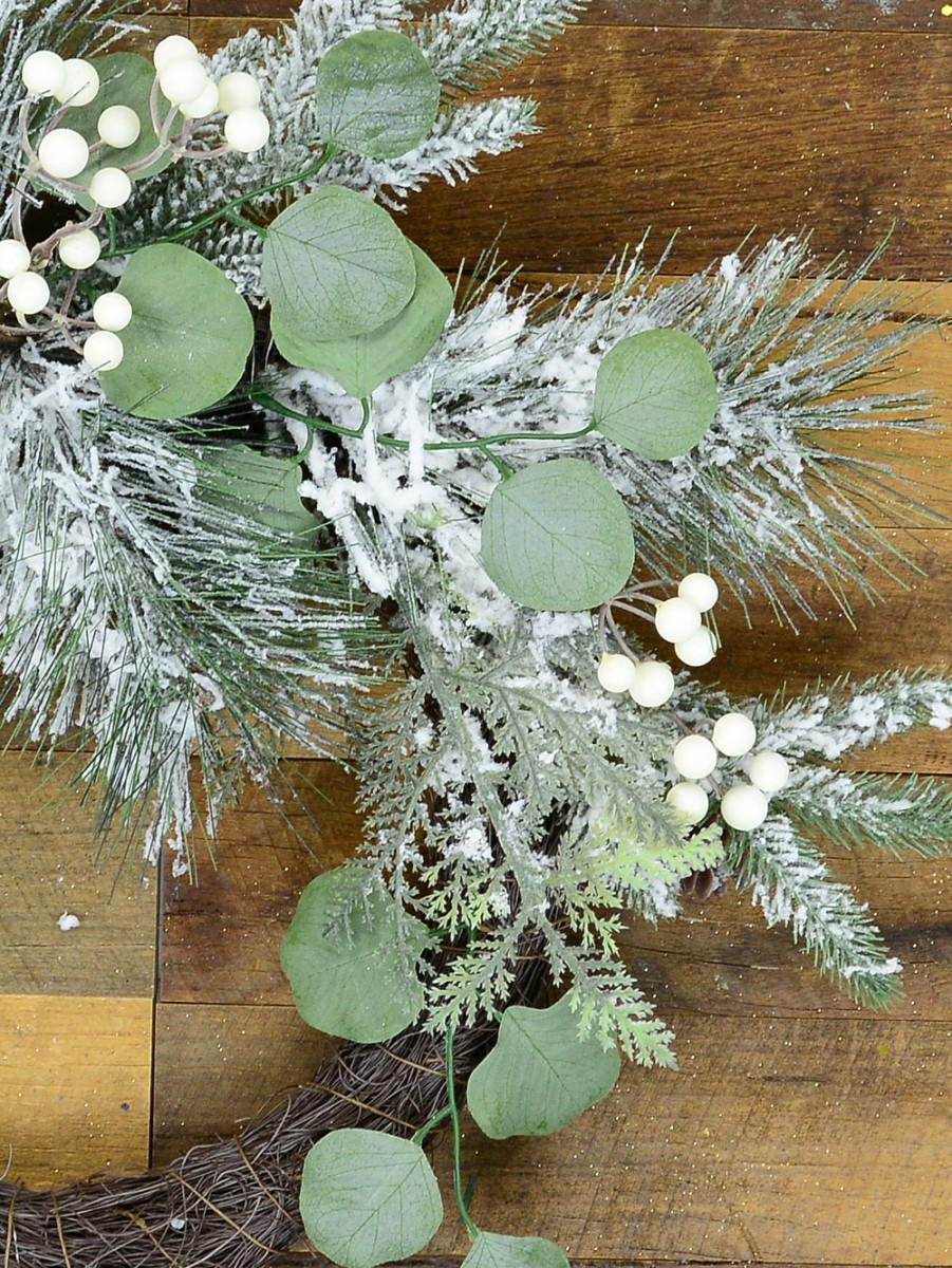 The Pre-Decorated Wire Spun Winter Wreath With Mixed Flocked Foliage is particularly crafted with such artful mastery for the purpose of decorating homes, offices, corporate buildings, public building and statutes, shops & stores, and a host of other decorative uses. The variously variegated artificial foliage wears a frosted look which is a beautiful semblance of when snow falls on leaves and plants. The white rounded flowering buds give the wreath an added look of elegance and energetic style. This wreath would prove highly functional in adding a country accent to all of your Christmas decorations. So, place your order now while it is still in stock.