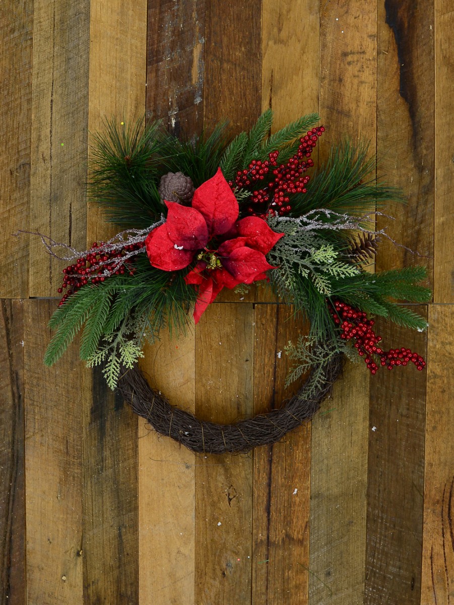 One of the startling details of Christ's birth is the humbling fact that he was born in in a farm yard, a manger to be precise. That is a whole lot of rustic scenery depictive of a country village outlook. Of course, at The Christmas Warehouse, we have a whole lot of decorative items that conveys this country accentuating decor such as the Pre-Decorated Wire Spun Wreath With Mixed Foliage & Red Poinsettia.