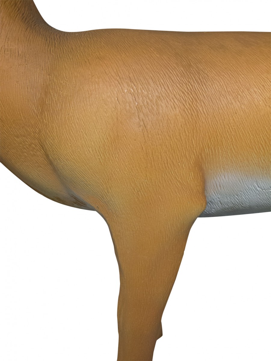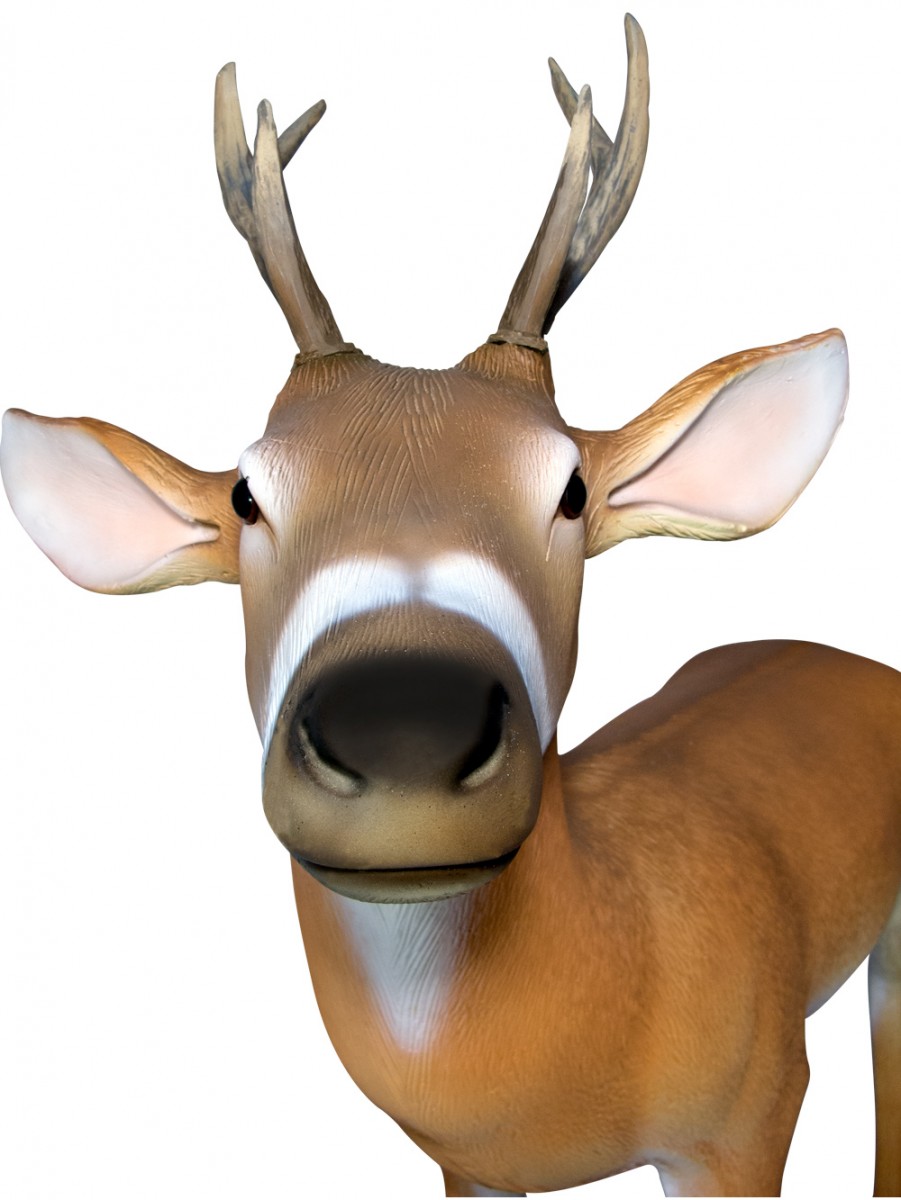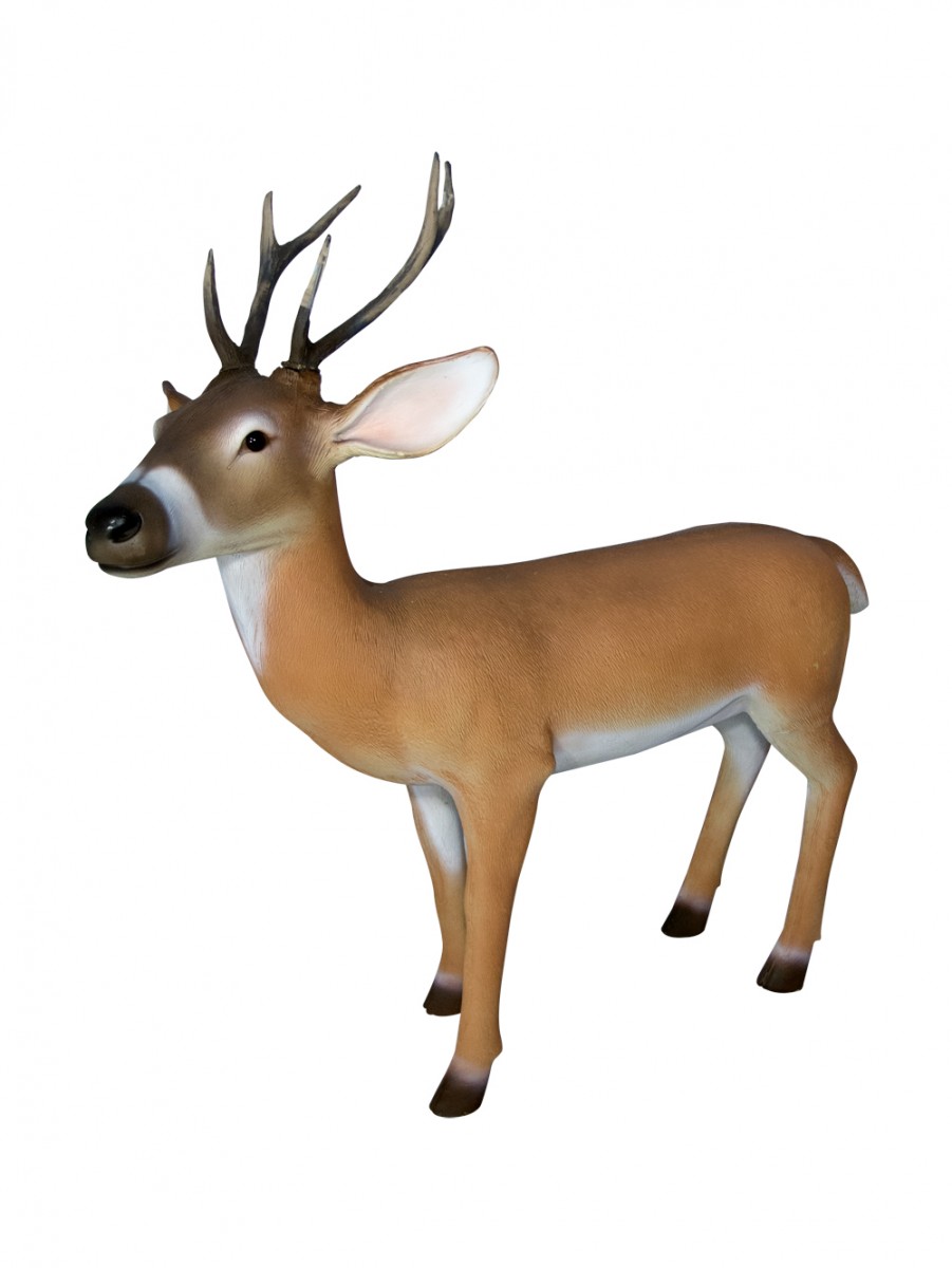 This is a resin reindeer display. It stands 1.1 meters tall and definitely looks realistic, wherever you place him. It was painted with a great deal of attention; the muzzle includes realistic nostrils, amazing shading of the fur, especially around the eyes. The eyes look real, as though it was once alive. The antlers were well created, with texture and shading. It is unbelievable how much attention this figurine will catch, just because of how realistic it looks, and then you can�t help but continue gazing because of how beautifully made it is. This is a great decoration to have in either your yard or within your own home. From the top of the display to the bottom, you can see the shading and texture done with the colours of this reindeer. As a bonus, you can detach the antlers if this better suits your desires!