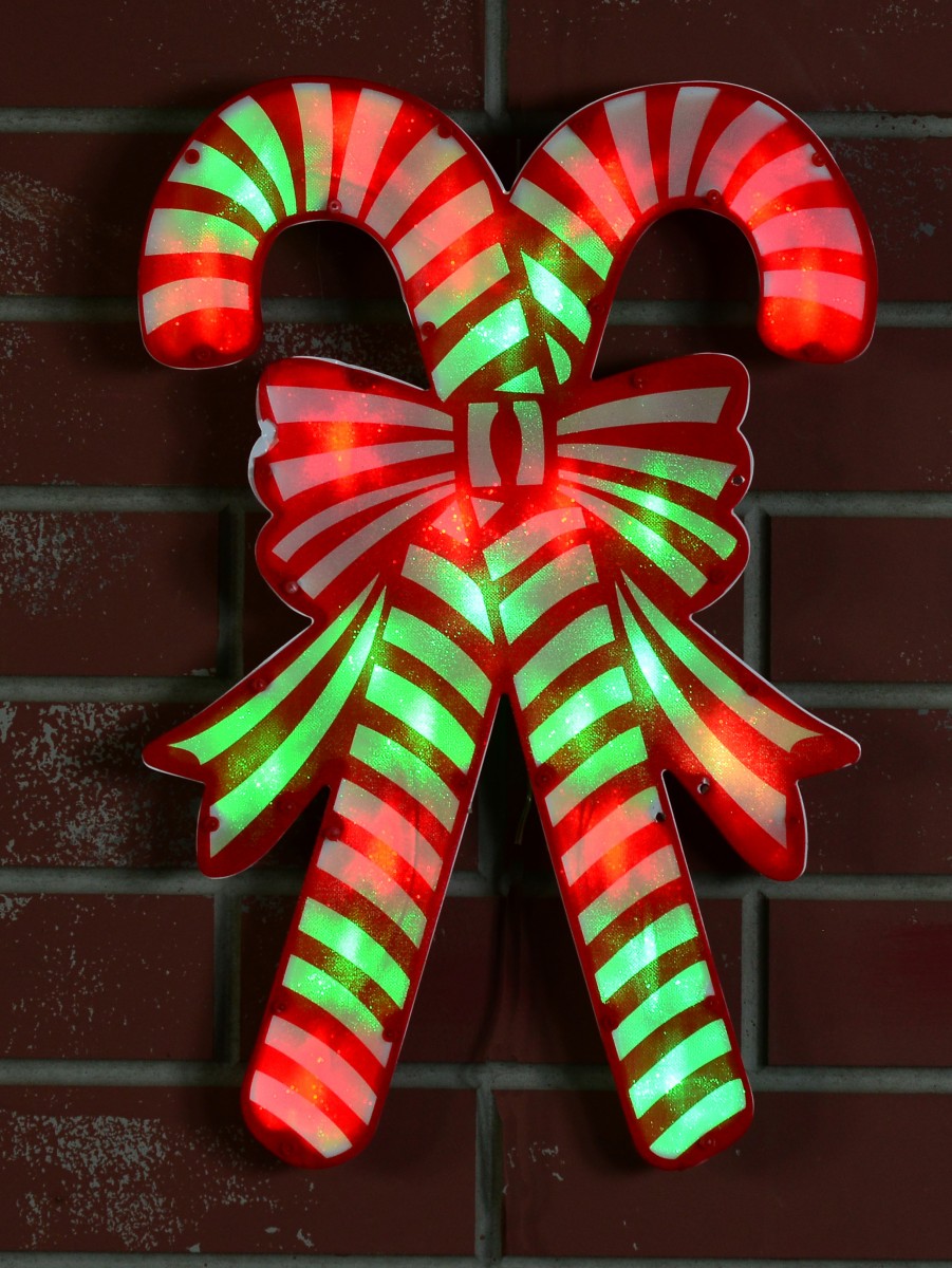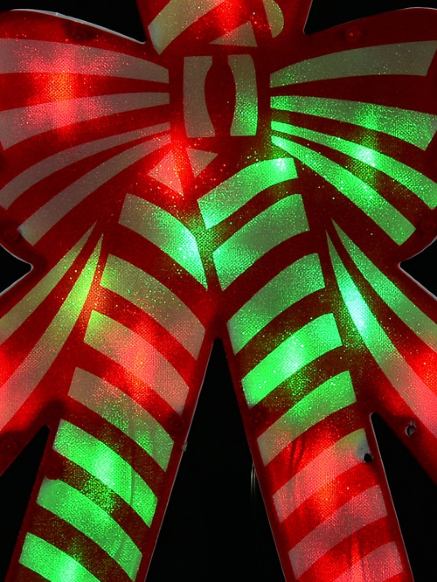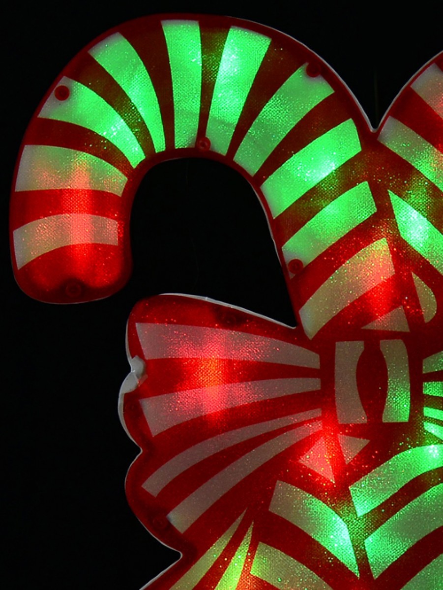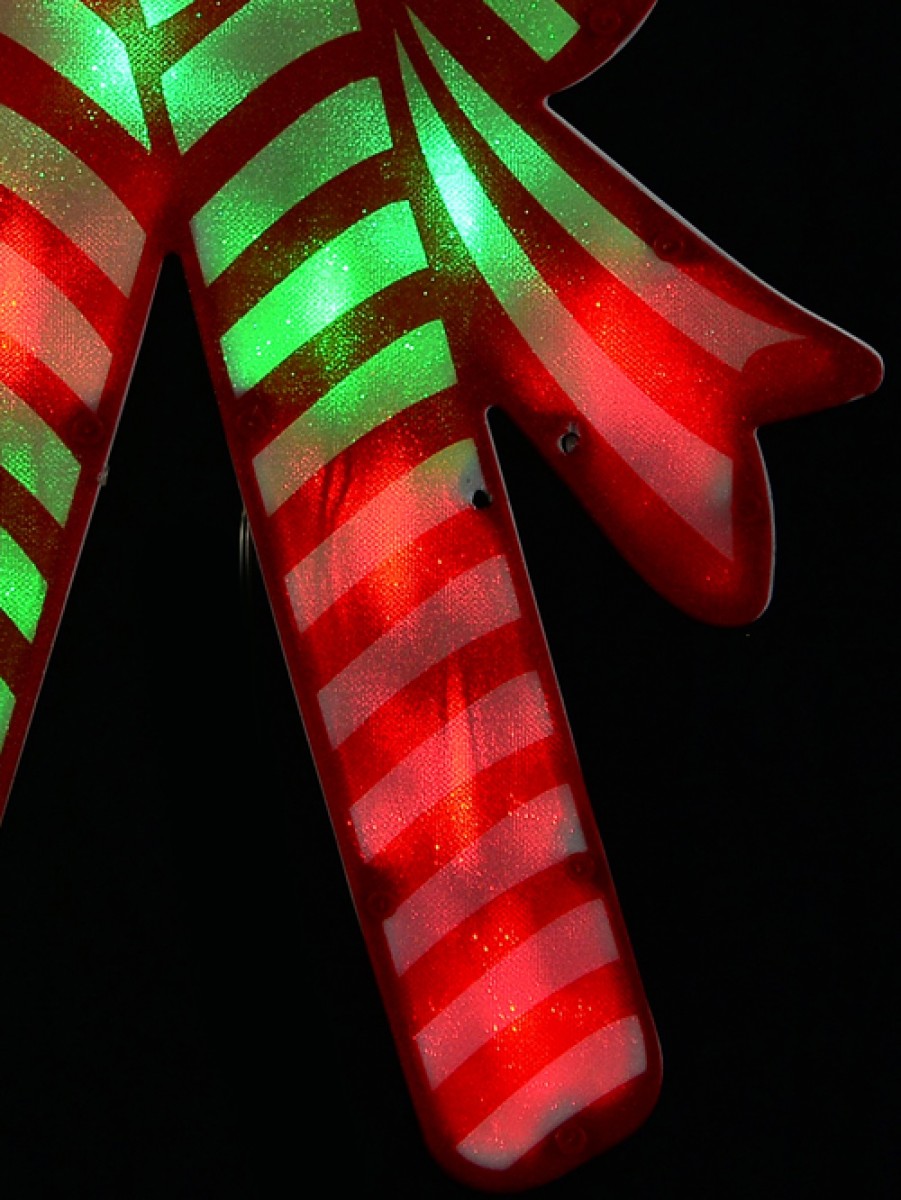 Using a dual-bulb light feature, this red and green PVC candy canes light silhouette is the perfect Christmas decoration this festive season. The two candy canes are made of translucent PVC with red and green glittered stripes and are crossed over one another with a ribbow bow design in the middle. To achieve the perfect glittery illumination, these candy cane lights employ 30 dual red and green LED concave twinkle light bulbs, each of which are spaced 10 mm from one another. The lights come with a 5m long lead that has a clear casing and a moulded PVC backing so you can easily hang it wherever you want. Thanks to the high-quality materials used to make this, it meets all the safety and performance requirements in Australia. Get these candy cane lights in sets today!