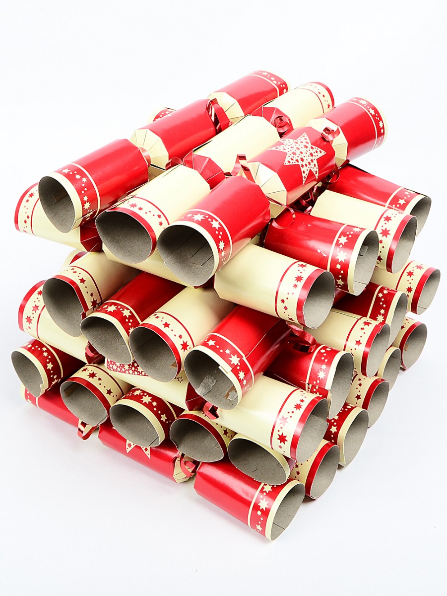 With each cracker tied off with striking red shiny ribbons, they are not just visually appealing but also a treasure trove of treats. Inside every cracker, your guests will find a snap, a small gift, a colourful hat, and a joke - sparking laughter and joy around the table. These delightful surprises make every pull a moment to remember, enriching the holiday atmosphere in your home, office, or any other festive setting.