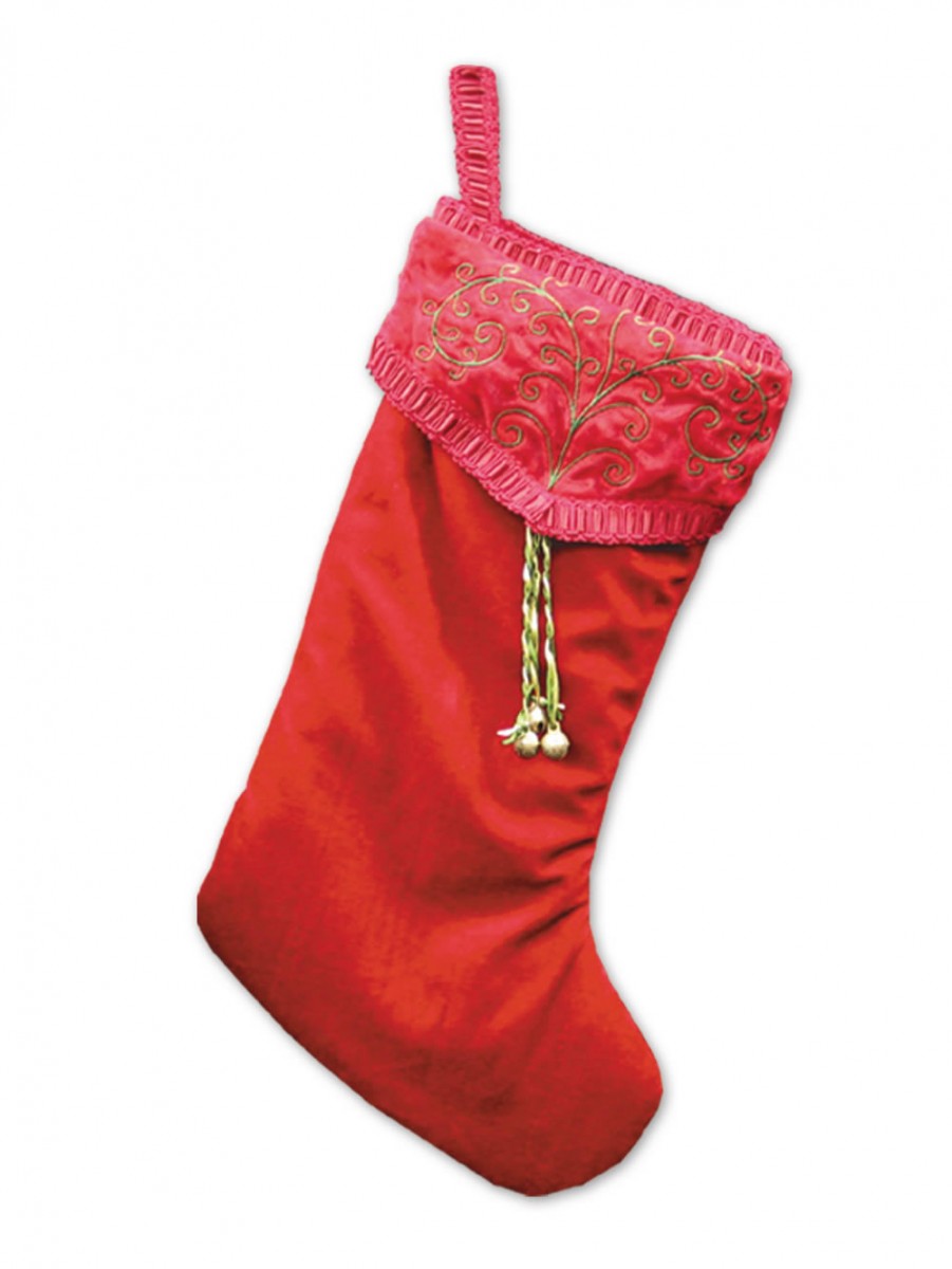 Are you looking for nice Christmas stockings which do not make use of the usual red fabric and the white fur cuff? Would you like something more interesting and flamboyant than that? If you are, then you should definitely get the Stocking - Red Deluxe Velvet with Bells. This utterly beautiful and elegant stocking looks as if it came from the Victorian era. It is stamped with the classical and late Baroque elements that any stylish miss will love. This stocking is made mainly of red velvet. The cuff is also made of the same fabric but is decorated with dark pink, short, vertical embroidery on the borders. It is also embellished with gold threads which form creeping vines that prompts Baroque floral adornments. The same dark pink embroidery can be seen on the loop which is used for hanging the stocking. This would be great for those who want something luxurious but like something not so expensive as well.