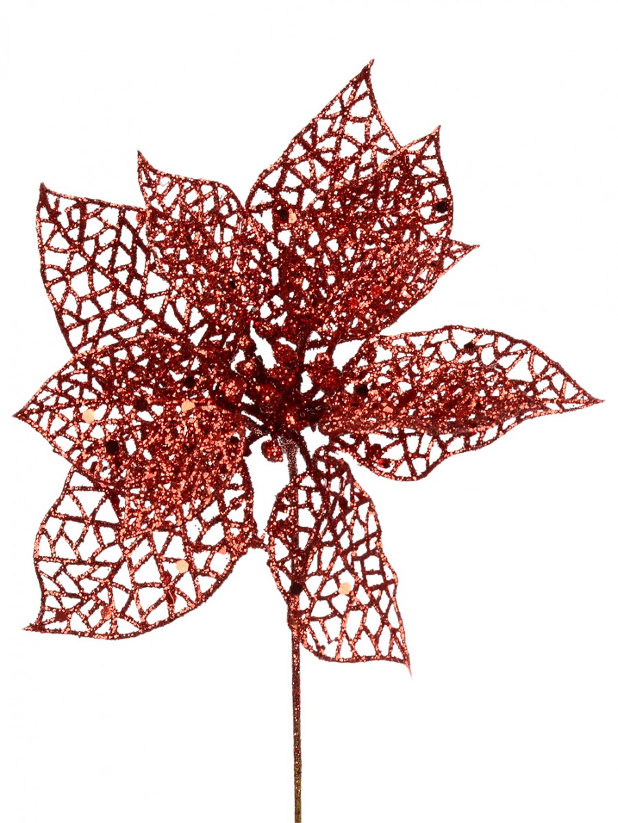 Traditional poinsettias are beautiful, but those looking for something a little different to use this season can find it in the Red Filigree Poinsettia Pick. This pick can add some pizzazz anywhere it's displayed whether you're using it on your Christmas tree or elsewhere.