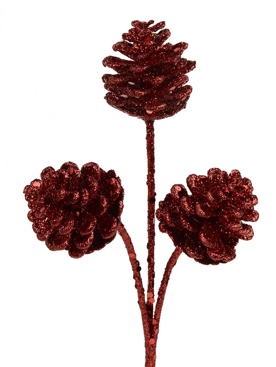 Bring the perfect pop of warm red colour to your Christmas tree, centrepiece, fireplace mantle or even a decorative shelf with our Red Pine Cones Pick that will fire up the cold winter evenings! This shimmering winter embellishment has three ruby red pinecones generously sprinkled with glitter and sequins on one single short stem which you can easily shape and arrange to your liking.