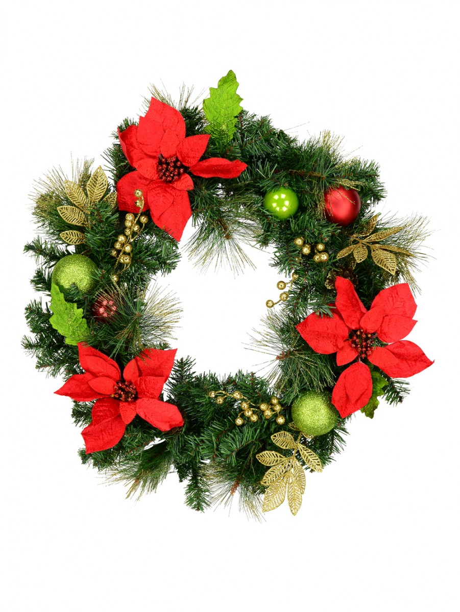 A wonderful holiday decoration, it will look ideal on any door size and will look absolutely striking at night if illuminated with LED battery operated lights. There is a variety of gloss, matte & glittered baubles, poinsettias, gold glittered pine cones, leaves and berries interwoven in the wreath some with glitter finishes. If you want to create the perfect holiday look this year then why not check out the full range which also features garlands, wall decorations, hanging ornaments and many more!