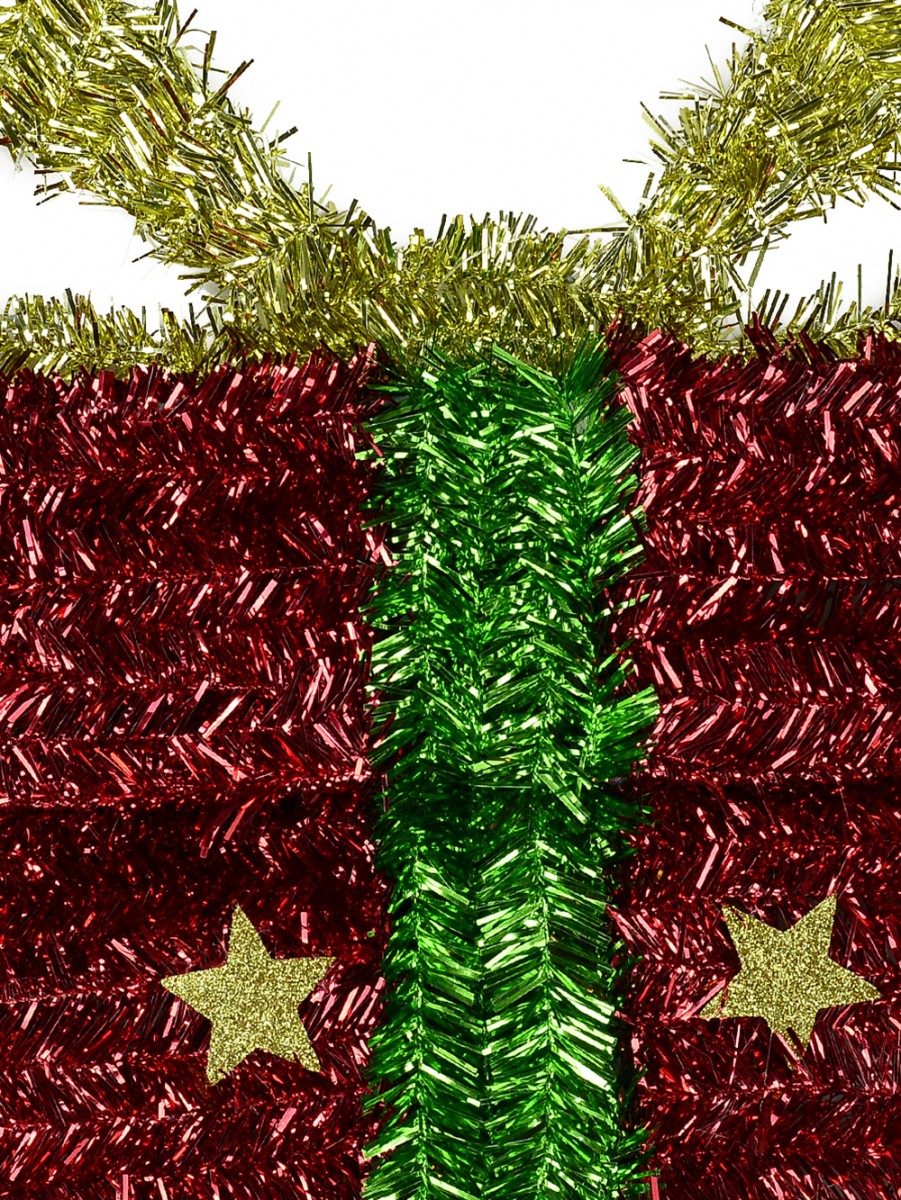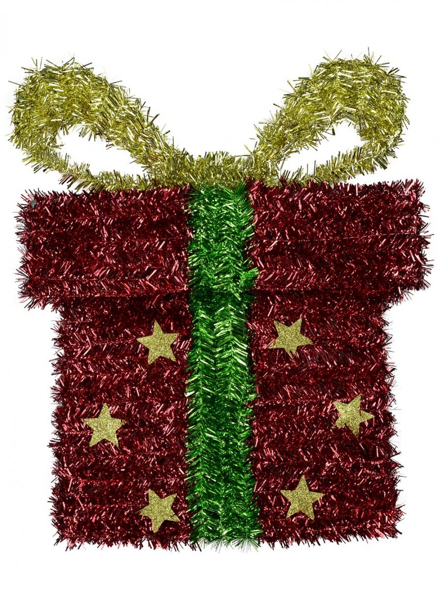 Some presents contain something shiny, others have metallic wrapping paper or sparkling bows, but this Red, Green, & Gold Metallic Tinsel 2d Gift Box shimmers from top to bottom thanks to the tinsel and gold stars. If you're interested in putting a little shine in your life this Christmas, this decoration can help make it happen.