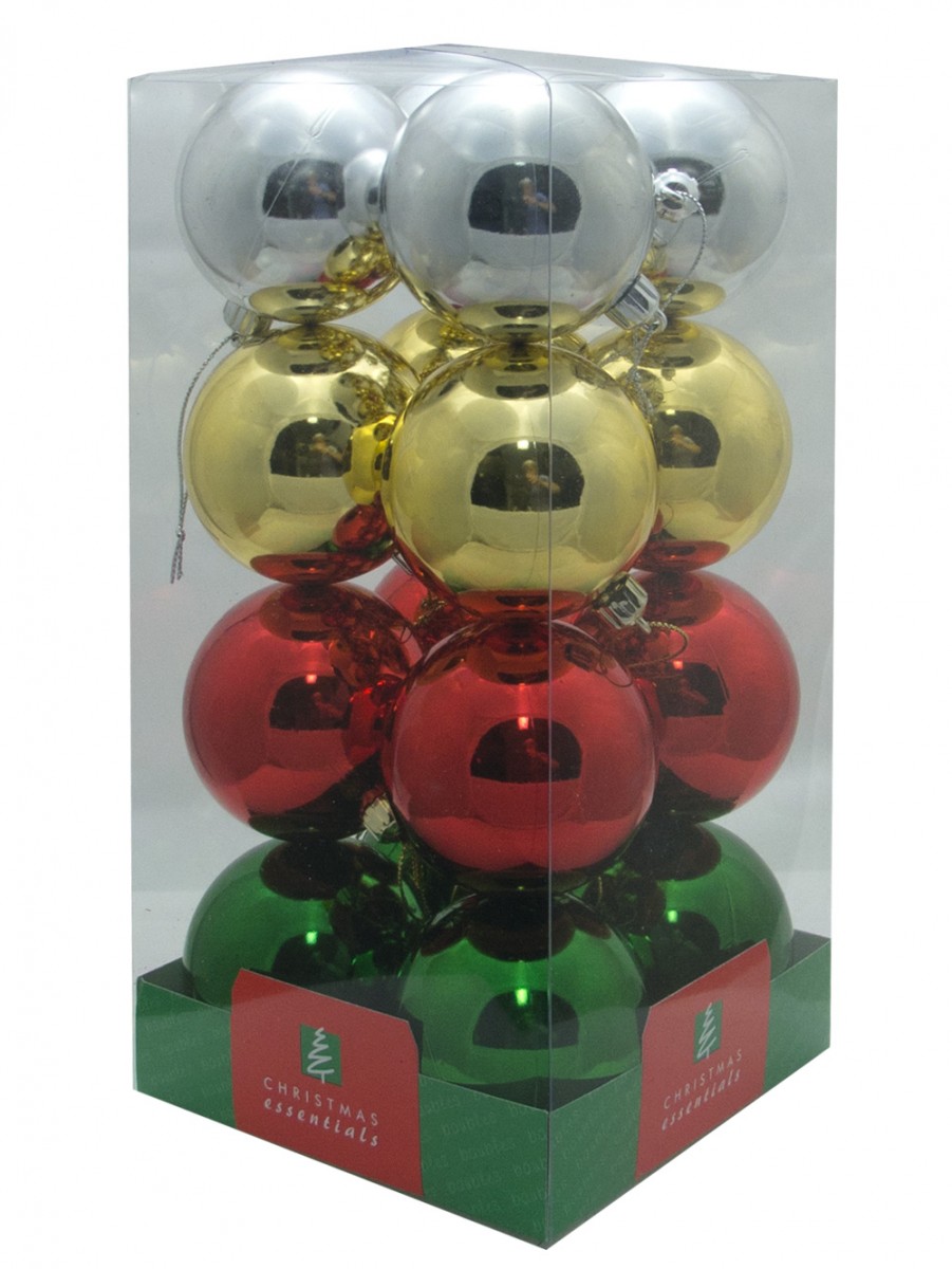 Variety is guaranteed with Baubles - Red Green Silver & Gold Metallic - 16 x 60mm! Christmas decorationsations are designed to create festive and bright ambiance anywhere. Different venues will definitely have a boost with Christmas balls in diverse colours and design features. It could easily accentuate varied places from homes to workplaces to commercial venues. There are 16 ornamental pieces in one pack. Each pack has four baubles in silver palette and another four balls in gold colour. Four pieces of red accessories and four pieces of green baubles complete the lot. Each ball is measured 60mm and has varied design features. Half of the lot is made with matt finish while the other half has metallic and shiny design. With just one practical package, there are up to four different colour choices of baubles to accentuate different locations. This ornamental pack is a great boost and accent for Christmas trees of all types and sizes.