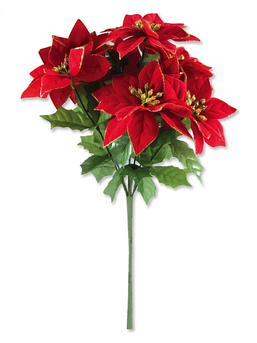 Measuring 30.5cm high, this poinsettia bush can be planted in any tall vase. The pick features seven red flowers and a number of green leaves which give the poinsettias a very realistic effect‹¨«your guests will not even guess that it is a fake plant! The other benefit to this realistic plant is that it will last forever. You can easily store it away in a box after the holidays and bring it back out to shine year after year. This poinsettia bush will make a charming accent to your home decoration this holiday season. Wintry floral arrangements are a breath-taking and classy way to decorate for the holidays. They make the perfect centrepiece to a grand table setting or they look picturesque in a vase near your entryway to greet your guests with warmth and joy. Wherever you choose to display this pick, the floral poinsettias are sure to be the elegant and traditional decoration your home needs. The Christmas season is a time for family, friendship and gathering together. Whether your party is informal or ornately decorated, the poinsettia plant is a classic Christmas symbol. Order yours today from the Christmas Warehouse to bring the holiday joy to your home.