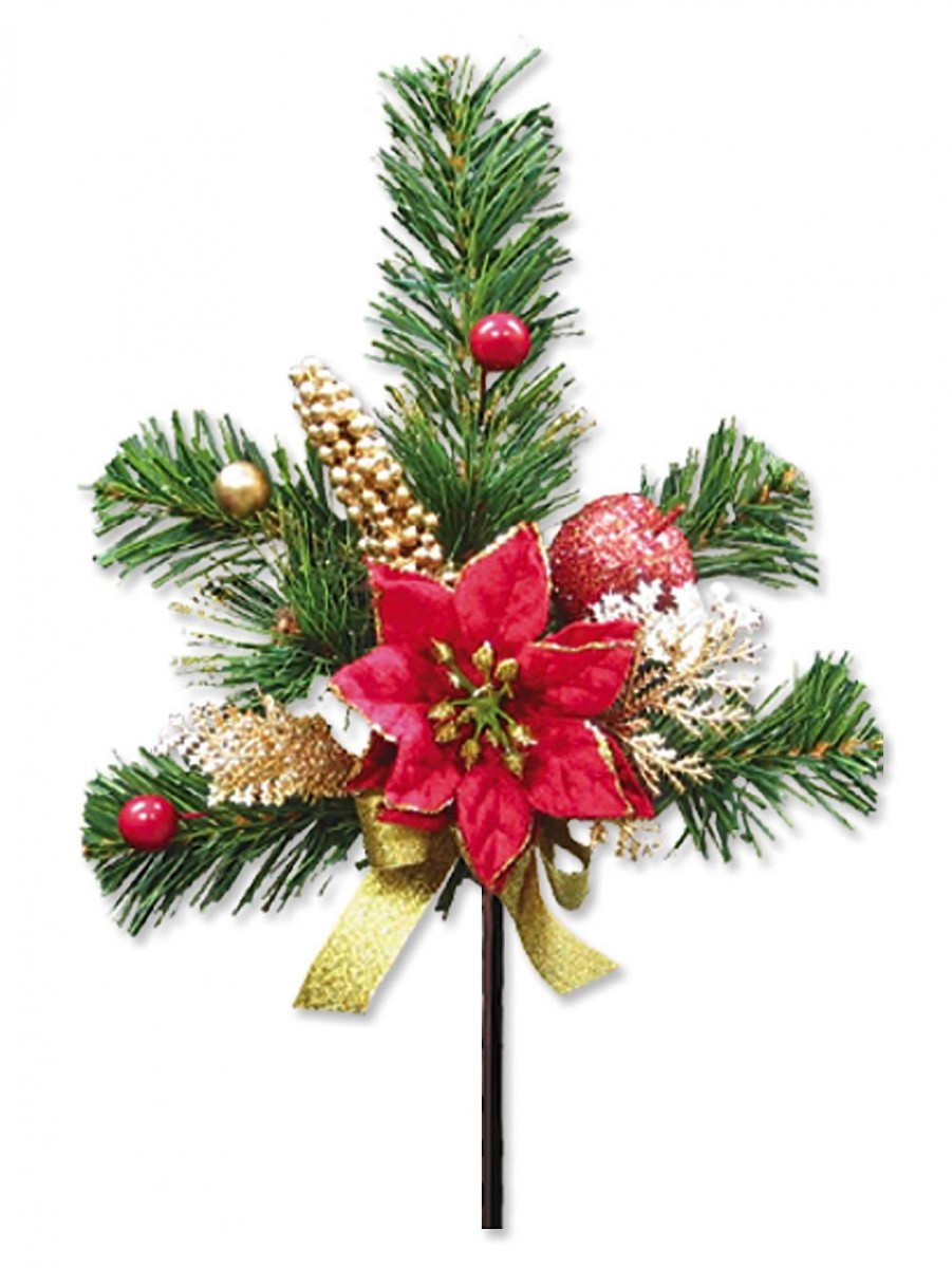 There are many symbols that represent Christmas. Plush hats, Christmas trees, deers, candy canes, then there's the poinsettia. Most people are aware of the poinsettia's relevance to Christmas, with its appropriate color and subtle appearance; there is no better plant to represent the season of nativity, hence the rising demand to utilize it as a good Christmas decoration. Christmas picks are sometimes represented by the poinsettia, so having the Picks - Poinsettia With Apples, Berries & Assorted Decorations - 50cm would definitely boost your Christmas house. Unlike the basic flower model as the main decoration itself, this product is integrated with pine cone, apple and assorted decorations. The overall package would then be a 50cm full-sized, adorable pick. With a Christmas icon included in the roster of your decorations, adding it up would then be a lot easier. Imagine your poinsettia decs and bow placed on different places of your home. Sweet, isn't it??