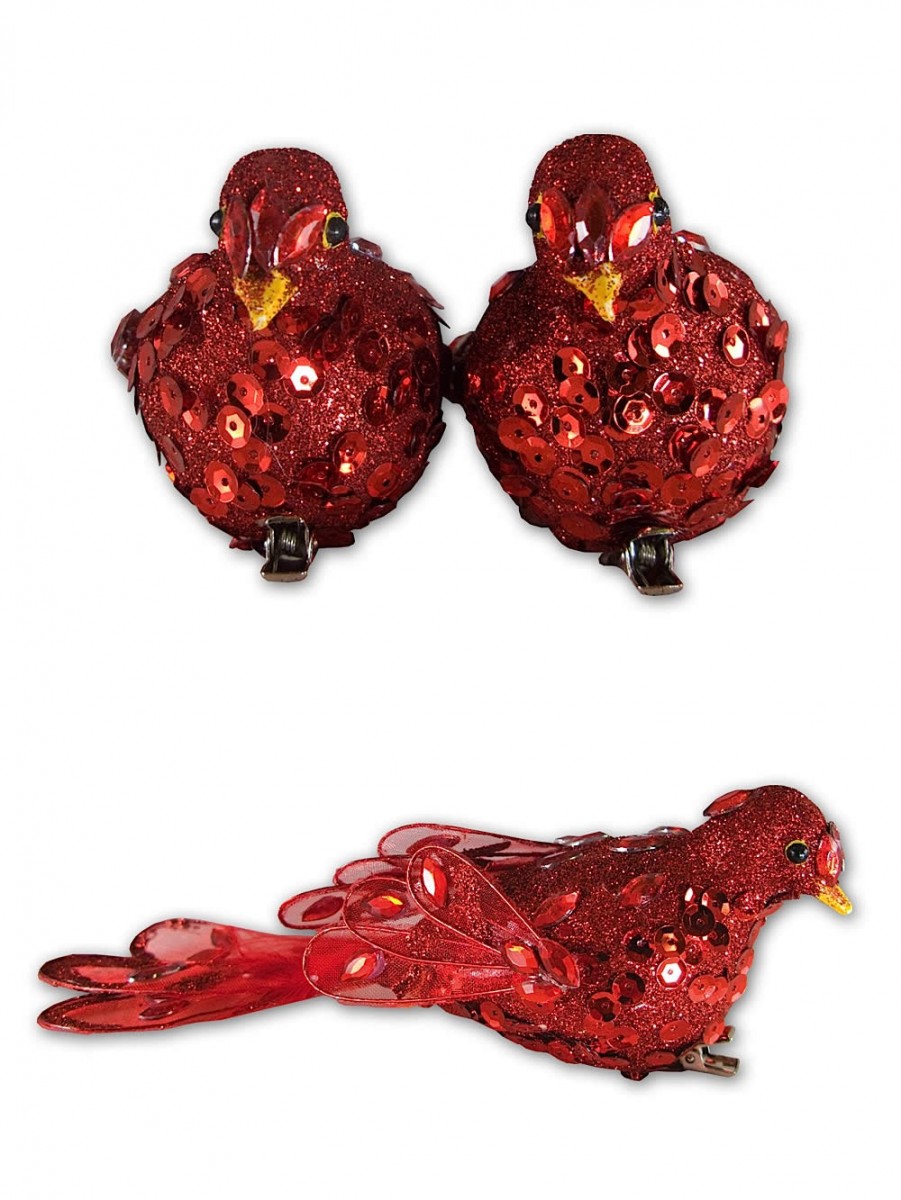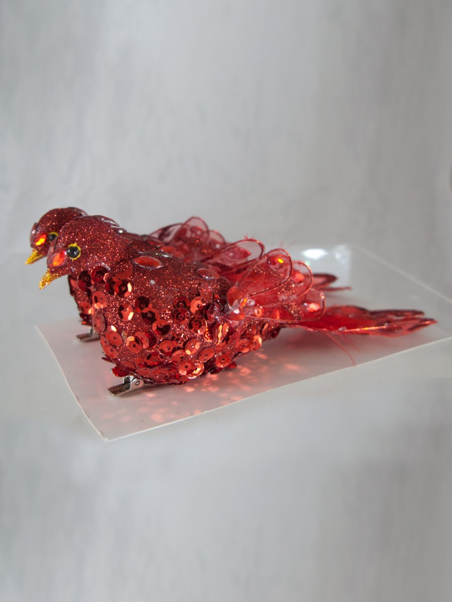 If you're looking for something unique to help decorate your home this Christmas, then you'll definitely want to add these pair of cute birds from our butterflies & birds line! Each pack of comes with two birds, each composed of beads, sequin, glitter plates and jewelled wings to complete the form of a bird. Each individual bird also has clips where their legs should be. This allows you �perch' these birds on your Christmas tree or place them along with your other Christmas-themed ornaments laid out on a shelf or desk. Each individual bird measures 140MM in length. We ship these ornaments anywhere in Australia, New Zealand or Fiji. We also offer other trinkets that would fit in well with a birds & butterflies Christmas theme. Simply check our catalogue of wares and pick out whatever catches your fancy!