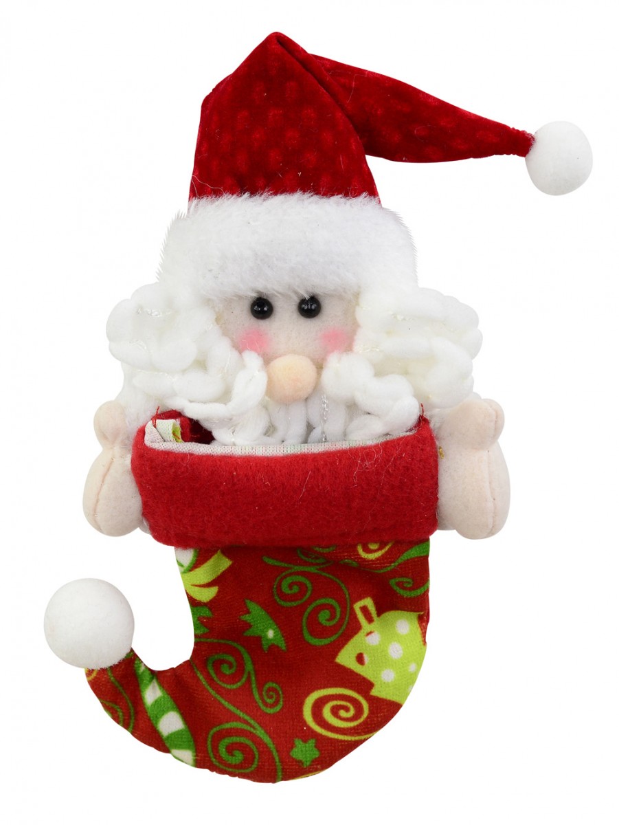 This Red Stocking with Santa peeking from the top is a great way to remind kids that Santa is here and watching them this Christmas so they better behave! This cuddly and soft to touch stocking has a cute looking Santa head on top giving an endearing look and wearing a fur-trimmed red Santa hat with his hands popping out from the sides.