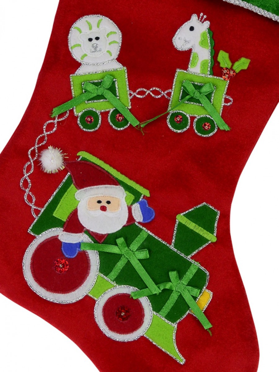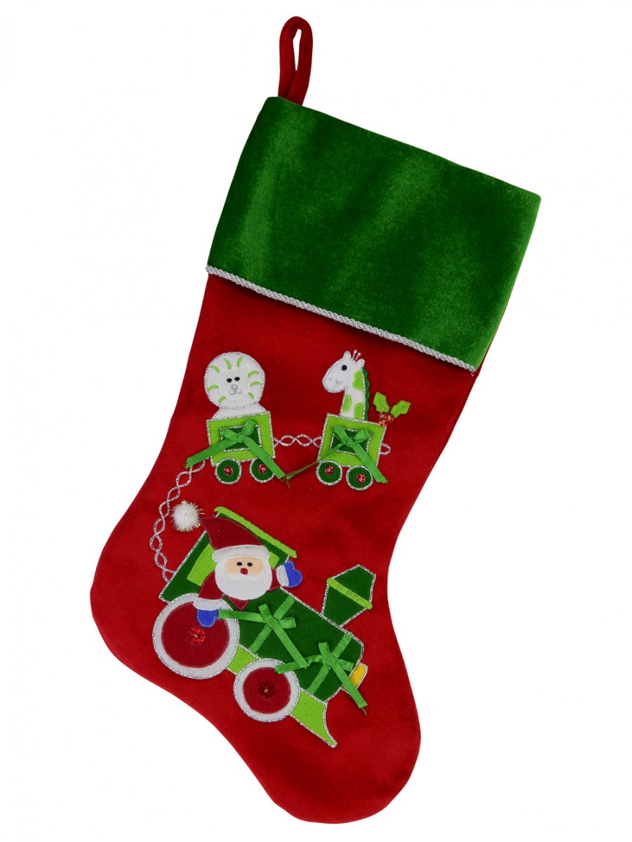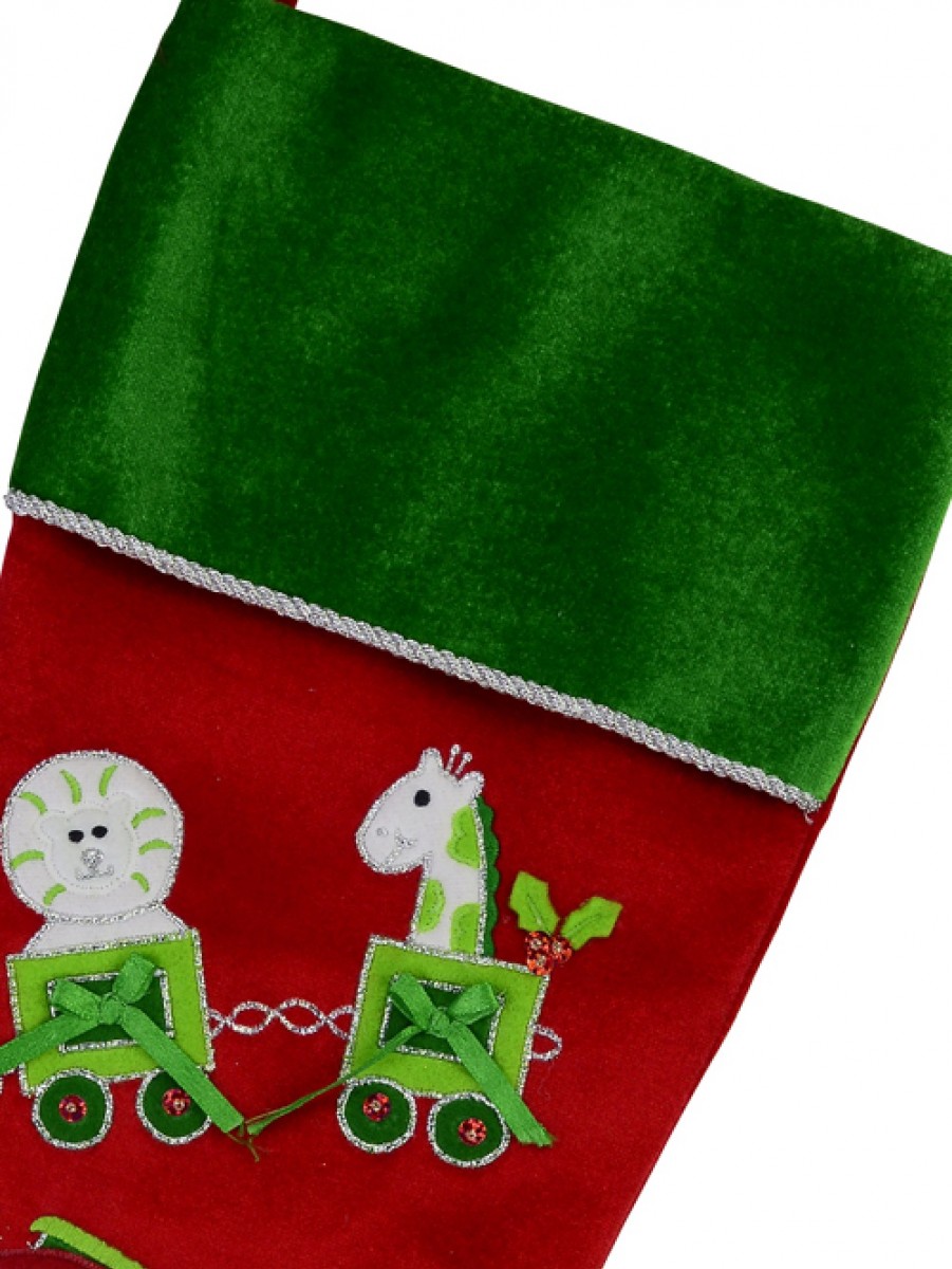 Whether it be for decoration purposes or your kids, Christmas stockings have always been a traditional Christmas item. With so many new designs coming up, people have the liberty to choose from what they like and what suits their decorations. Want your little one to have a Christmas stocking of their very own that they can have beside their bed or under the Christmas tree? Then, this red velvet with a green Santa train and toys is perfect for your little kid. It has the carriage links and cuff embroidered with metallic silver edging and comes in the traditional Christmas colours - red and green. The cute design, along with the velvety texture of the Christmas stocking, is sure to make your kids excited about Christmas. With a low price guarantee and a fair replacement promise, make this Christmas a memorable one for your kids!