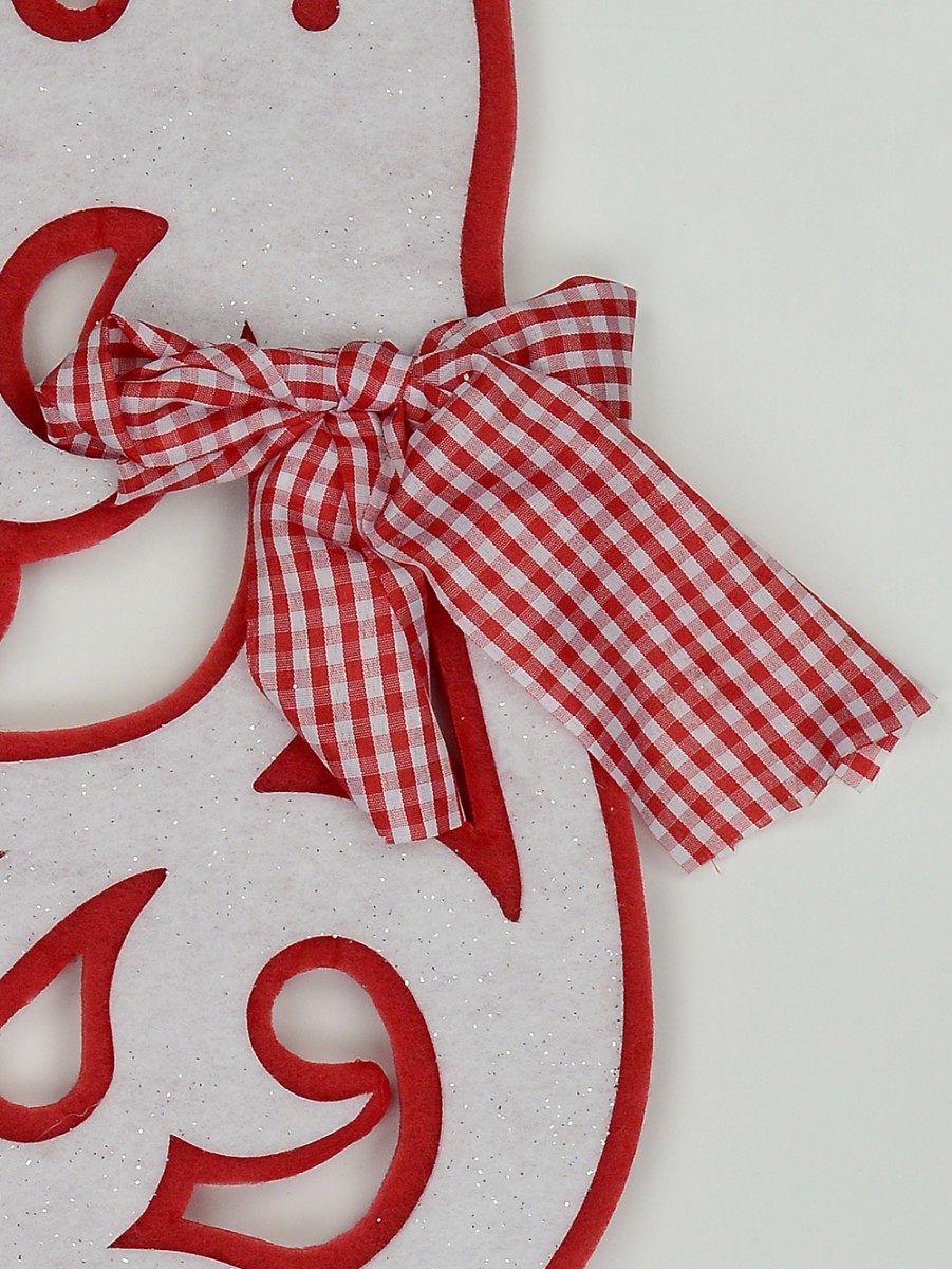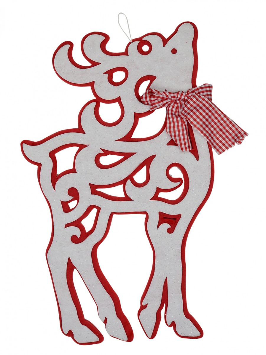 Add a glitzy charm to your Christmas tree with this large red & white glittered reindeer hanging decoration that will complement any living space, such as the bedroom, living room, nursery, playroom, family room. The ornament is uniquely carved from Dacron to create a lovely stylized deer motif having a red outline with a checkered red and white bow cutely tied to its neck.