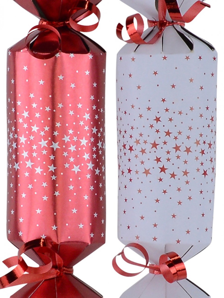 Red & White Stars Design Pattern Christmas Cracker Bon Bons - 12 X 30cm