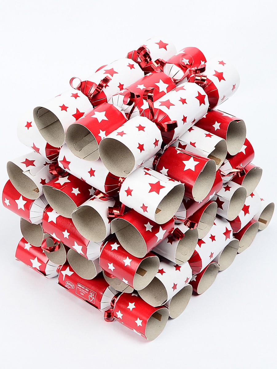 - 50 x red with various sized white Christmas stars cracker & handles