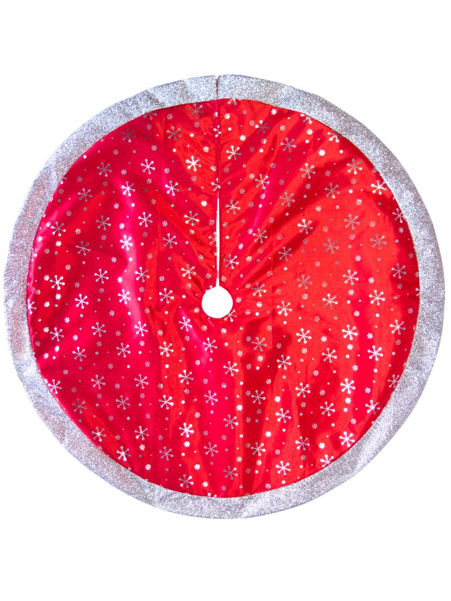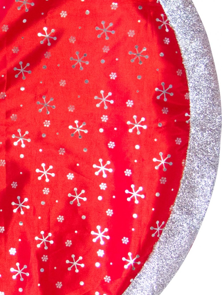 Dress up your Christmas tree in the weeks leading up to the big day, and once the presents have all been opened afterwards! Add a touch of class and cover up an unsightly tree stand or artificial tree base with a festive and colourful tree skirt. You can never go wrong with shimmer, shine, and sparkle during the holidays, and this sparkly metallic tree skirt will fit right in. Cheerful and festive, metallic silver snowflakes are printed against a red satin background and bordered in a metallic silver tinsel like fabric. Tree skirt�s dimensions are 1.2 m x 1.2 m for ample coverage.