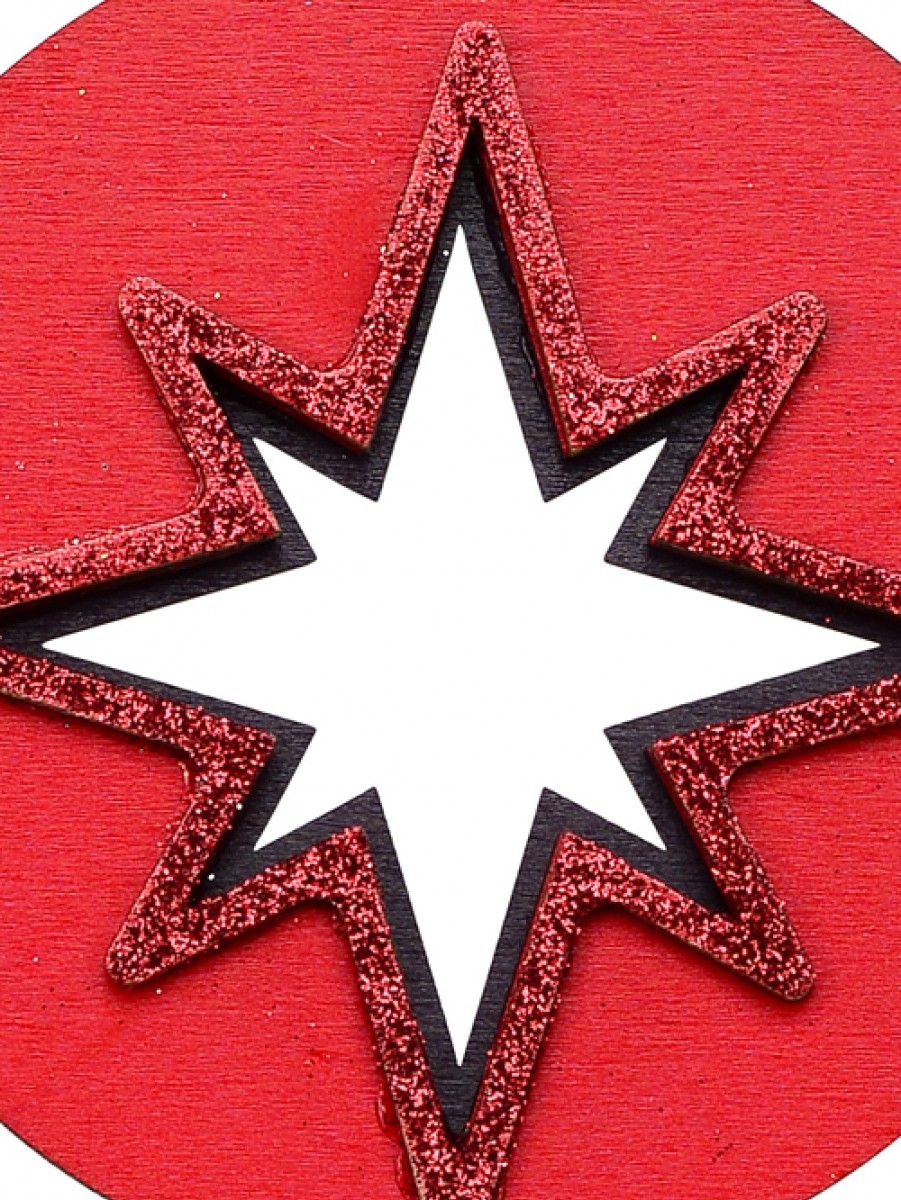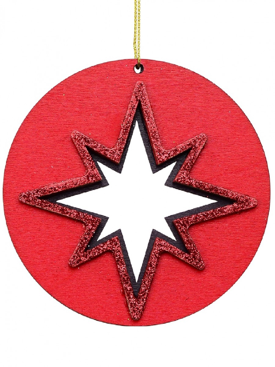 The Red Wood Star Of Bethlehem Silhouette Medallion Hanging Decoration is depictive of the bright star that appeared in the sky on the day that Jesus was born in a manger in Bethlehem. That bright star which appeared led the Three Wise Men to his birthplace. This ornamental red star features a laser cut 100% natural red wood in a spherical shape and has yet another shapely star cut right into the midst of it. This 8 point star is covered in sparkling red glitters with the interior painted a regal purple colour. It has a gold chain string and as can be seen in the sample picture, it looks stunning when used in decorating Christmas trees. Click that link and place your order now!