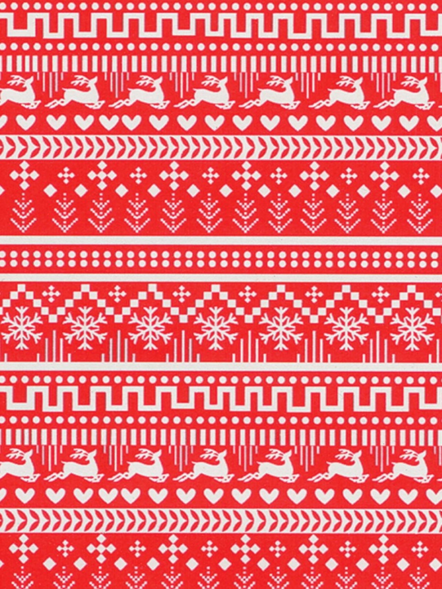 This bold white on red pattern is a complex design involving reindeer, trees, snowflakes, and hearts, as well as a number of geometric prints. Reindeer appear to be jumping over hearts in a snowy field or forest underneath rows of icicles. But really, the exquisite pattern on the ornate gift wrap counter role could be anything you wanted it to be. It is an eye catching design not for the faint of heart but perfect for anyone that loves the colour red. The reindeer, trees, snowflakes and hearts ornate gift wrap counter roll is a design that is as elegant as it is hip. It is ideal for wrapping fine retail products of any type.