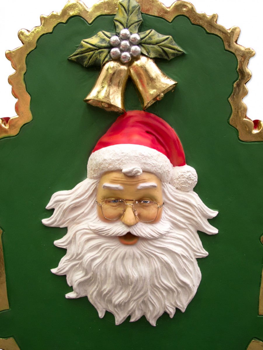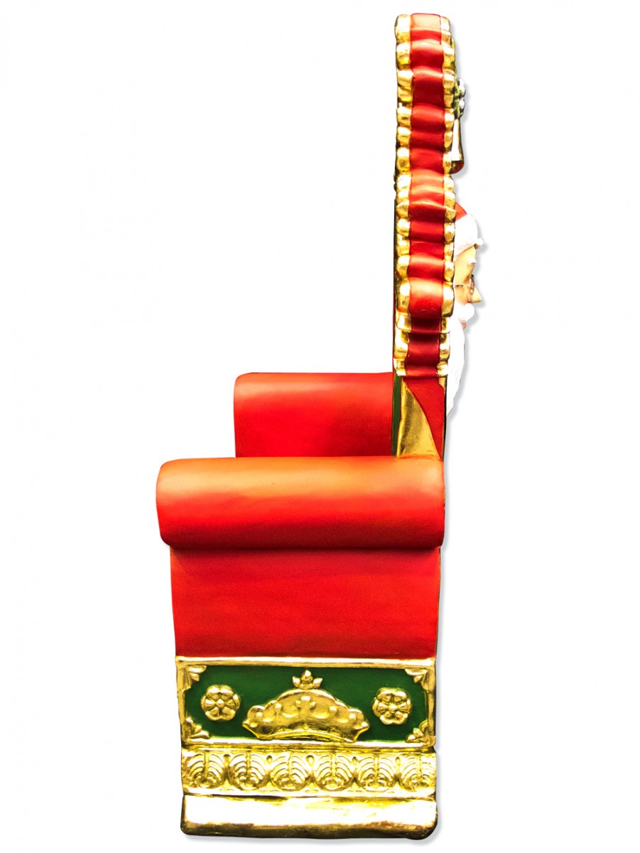 As Christmas decorations go, this is probably one of the largest, at 1.45 metres high. It has a rather regal look, with gold painted filigree type adornments on a green background, red upholstery and a Santa's face and bells on the back. This Santa chair is not cheap, but is made from sturdy poly resin, making it a long-lasting item that is sure to become one of your family's very favourite Christmas traditions.