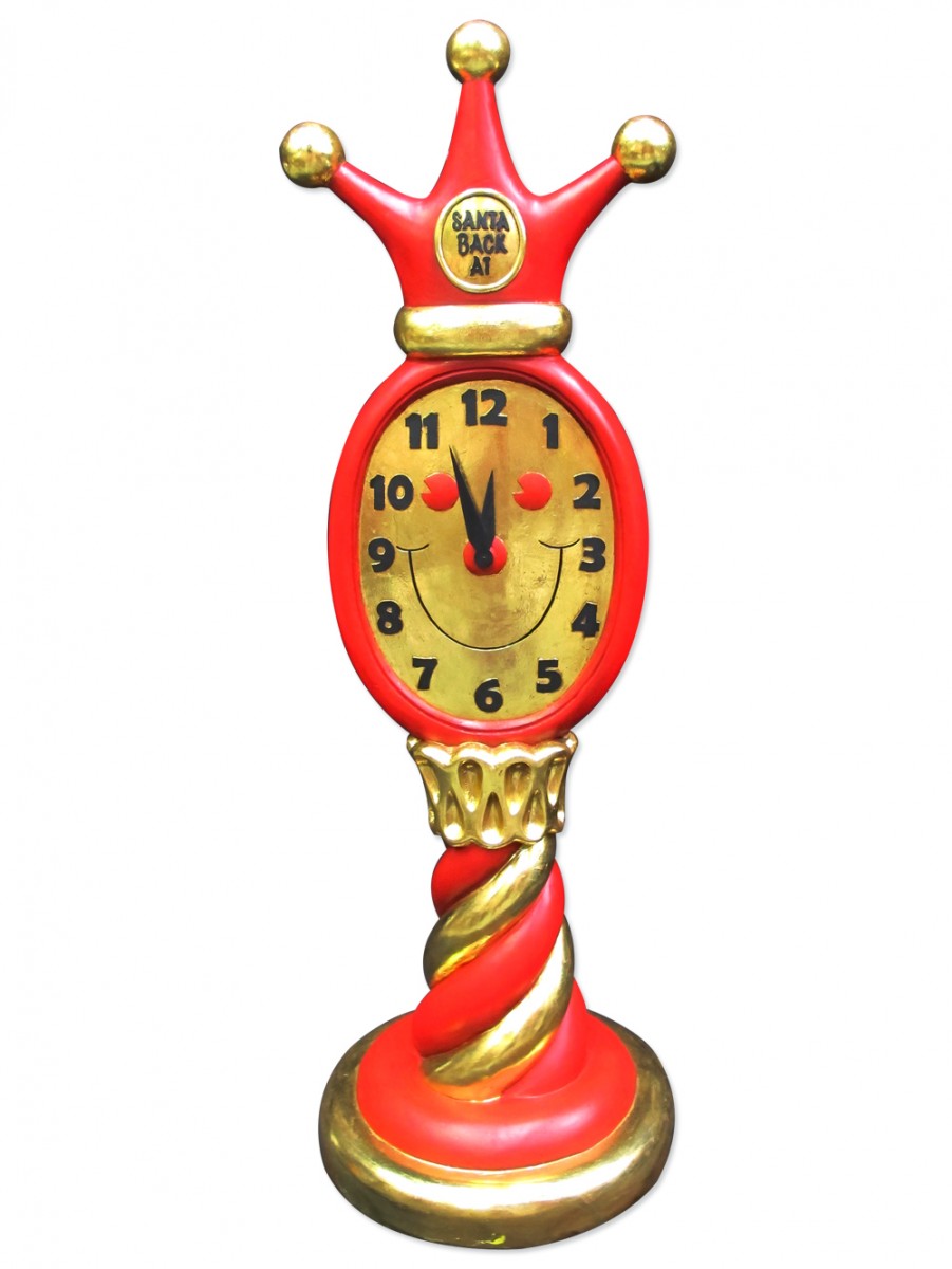 Standing at 1.6 metres, this timepiece, with a large easily readable face, will brightenup your living space and has the added advantage of being a novel way to teachchildren to tell the time. The manually movable metal hands make it easy and fun forchildren and adults to set a time and play a guessing game with this Christmasdecoration, after Santa has been, so that children learn to associate the position ofclock hands with a particular time of day, e.g. 7.30am breakfast, 3.30pm schoolfinishes. It's a good idea to position the clock near the chimney if you have one, or ifnot, near the entrance door. This makes it easy for Santa to remember to record thetime of his visit. Of course, you have to leave him some food as he has travelled along way and the reindeer would probably appreciate a carrot or two. And do becareful what kind of drink you leave for him. There are drink-driving laws even forsleighs!