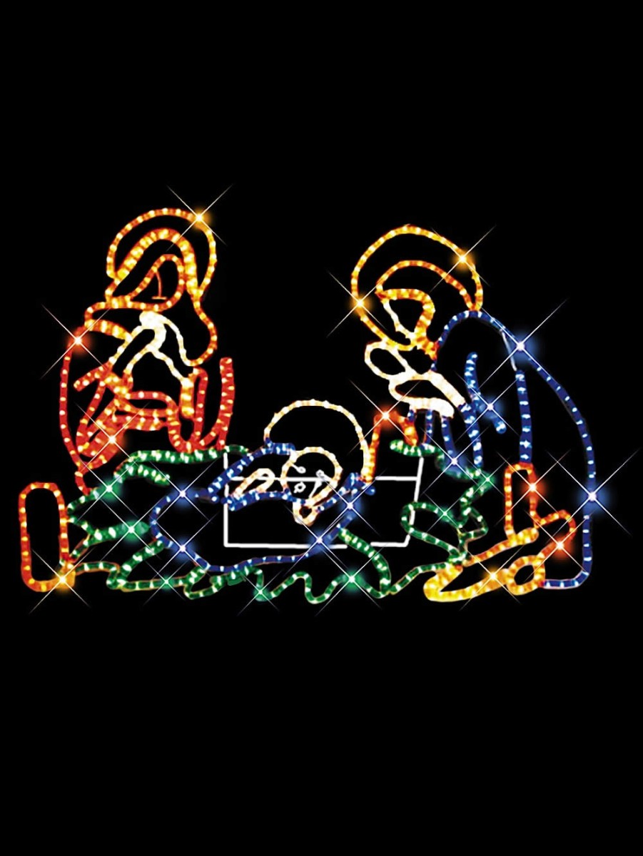Christmas light displays are some of the most beautiful additions to your holiday decorations � especially when the lights paint the unforgettable scene of the nativity. The display uses light ropes of multiple colours to portray the newborn Jesus as he lay in a manger surrounded by his two parents. This is perfect for the religious family that wants to beautify their home for the yuletide season while remembering the essence of Christmas at the same time. This particular line of Christmas light displays measures 800mm high by 1.15 metres long, and comes with a 1.5 metre extension cord that plugs into a 240V outlet. The lights portraying the nativity scene are set to a static burn and supported by a sturdy metal frame to ensure the whole set stays firmly in place. We also carry similar Christian-themed decorations for the holidays. Simply check our catalogue to see what we have to offer!