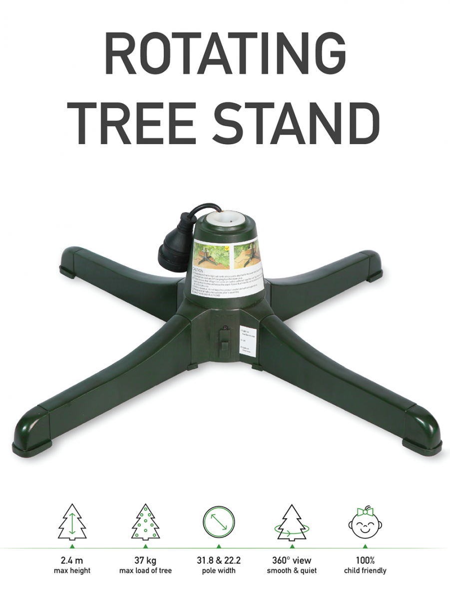 For the ultimate in a Christmas Tree Display, why not get a rotating stand? Not only does it spin at an elegant pace, but you can also plug your lights in so they too can spin without any tangling or mess. Suits many sizes of tree stem, and is mains powered. Your tree will look, wow!