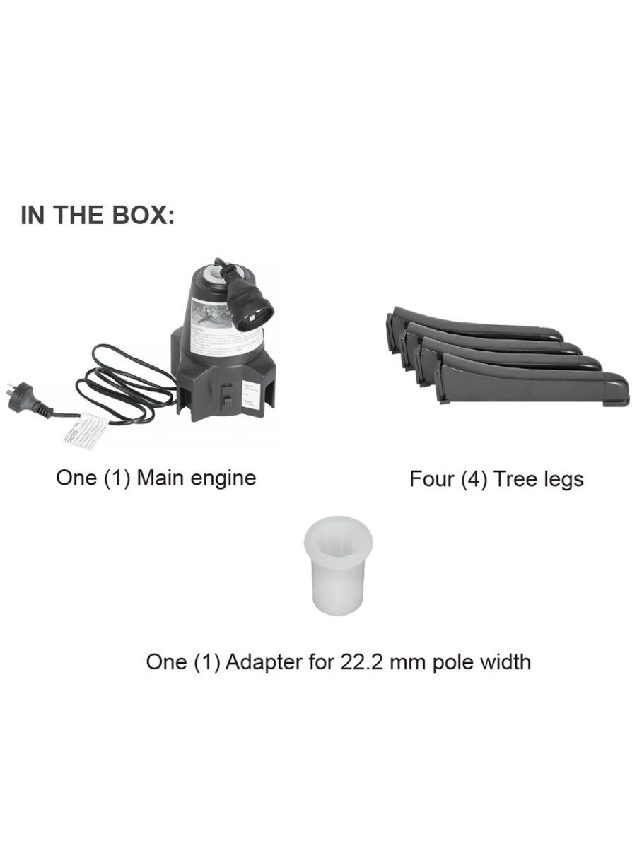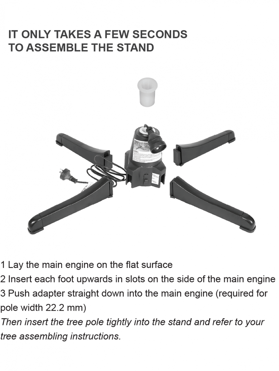 Christmas trees are a necessity in order to have that complete, perfect Christmas celebration. We've got just the right gadget to ensure that this year's Christmas tree experience is loaded with fun like never before. Recommended for indoor use only, it can hold up any tree not taller than 2.4 metres and weighing not more than 37kg (decorations inclusive). It is powered by being plugged into any electrical outlet and has three operating functions to choose from. You could either set it to remain stationary, lights only or rotating with lights on. It conforms to Australian safety, quality and performance requirements.