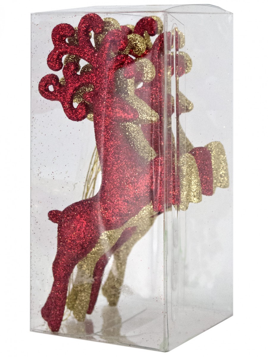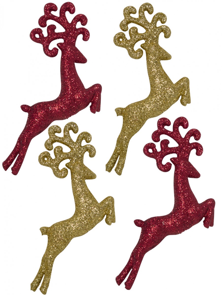 Having a unique and sparkling themed Christmas decorations would definitely make things a lot more interesting during the season. However, with the virtually inexhaustible options, making a decision would be challenging. Why not make things a little more golden by trying out the Ruby Red & Gold Glittered Deer Decorations? Having the gold and red deers, whether used to support a gold themed decoration set or just a complement to other colors, is a sure fire choice. It gives that much needed shine to set the right mood for Christmas elegance, happiness and brilliance of positivity! Yes, it is a common choice, but its simplicity is fool proof because as they always say, simplicity is beauty. With each pack having 4, 50mm x 10cm - sized deer decorations, what is not to love? The relatively in size would make each Christmas decoration it is paired up with shine and appear unique. Enjoy your merry Christmas of red and golden elegance with the Ruby Red & Gold Glittered Deer Decorations!