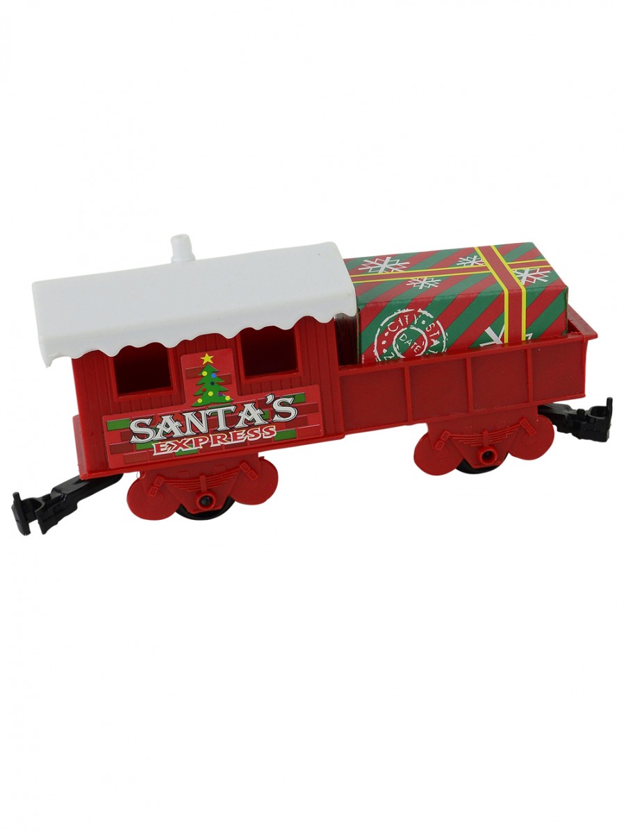 Tracks are included with this great starter set. The painted carriages are done in red, green, black, and silver. The life like old fashioned engine has a smokestack and engineer's compartment, and detailed carriages have the words "Santa Express" painted on them. The caboose comes complete with "windows" for a realistic effect.