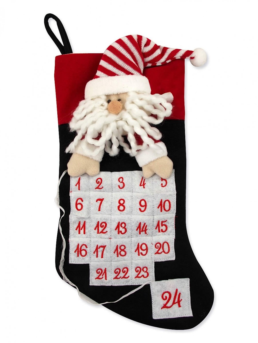 An Advent calendar of red numbers set against a white background is found on the stocking, making sure that you don't forget that special date when you look at the item.