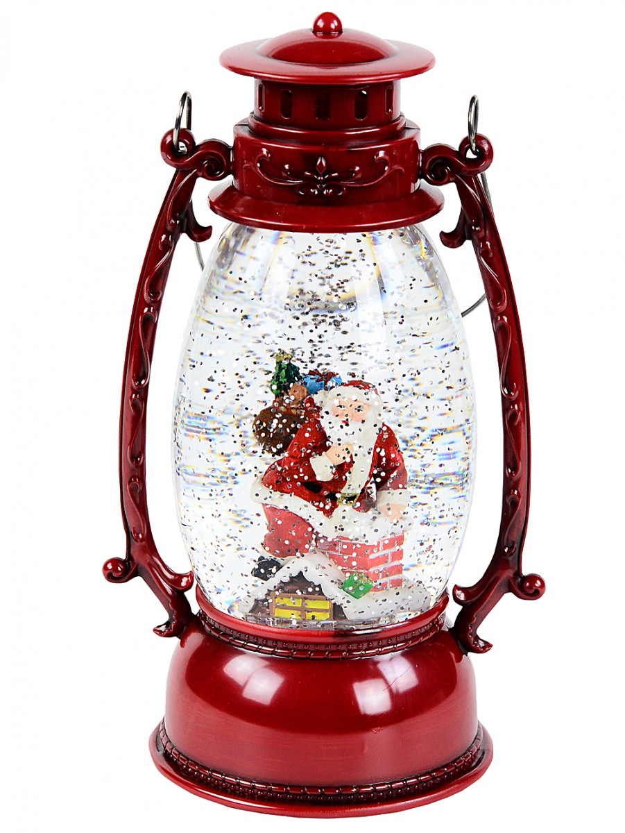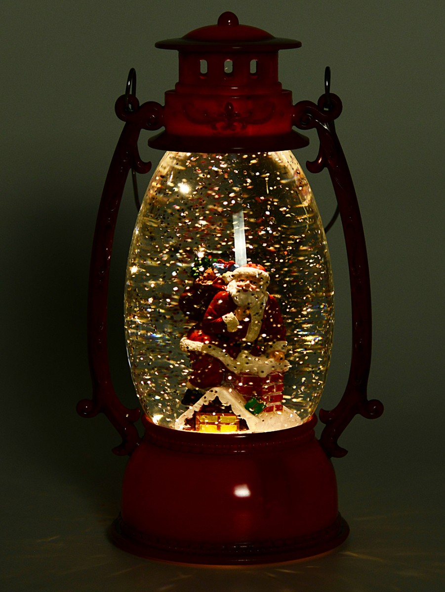 Transform your holiday decor with the Santa In The Chimney Hurricane Lantern Christmas Snow Globe. Measuring 24cm in height and crafted in a stunning red, this enchanting piece is designed to capture the magic of Christmas. Featuring an antique look and feel, this hurricane lantern is a beautiful addition to any festive setting, whether at home, in the office, or any other space that needs a touch of holiday joy.