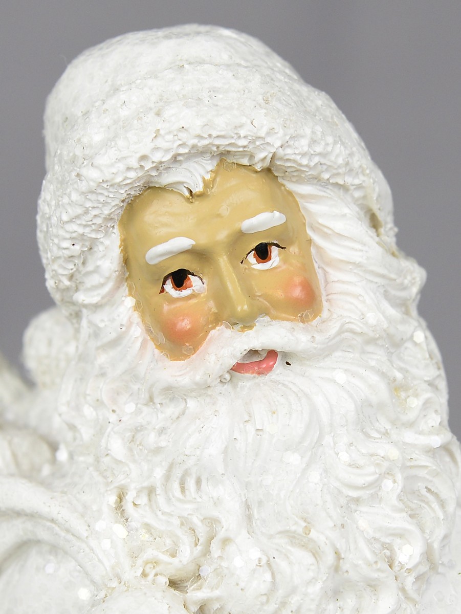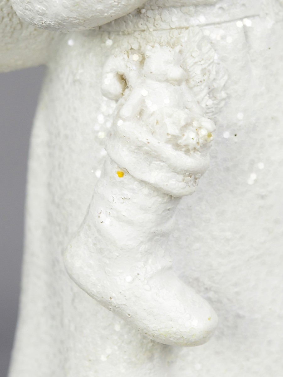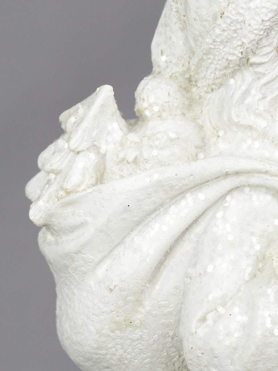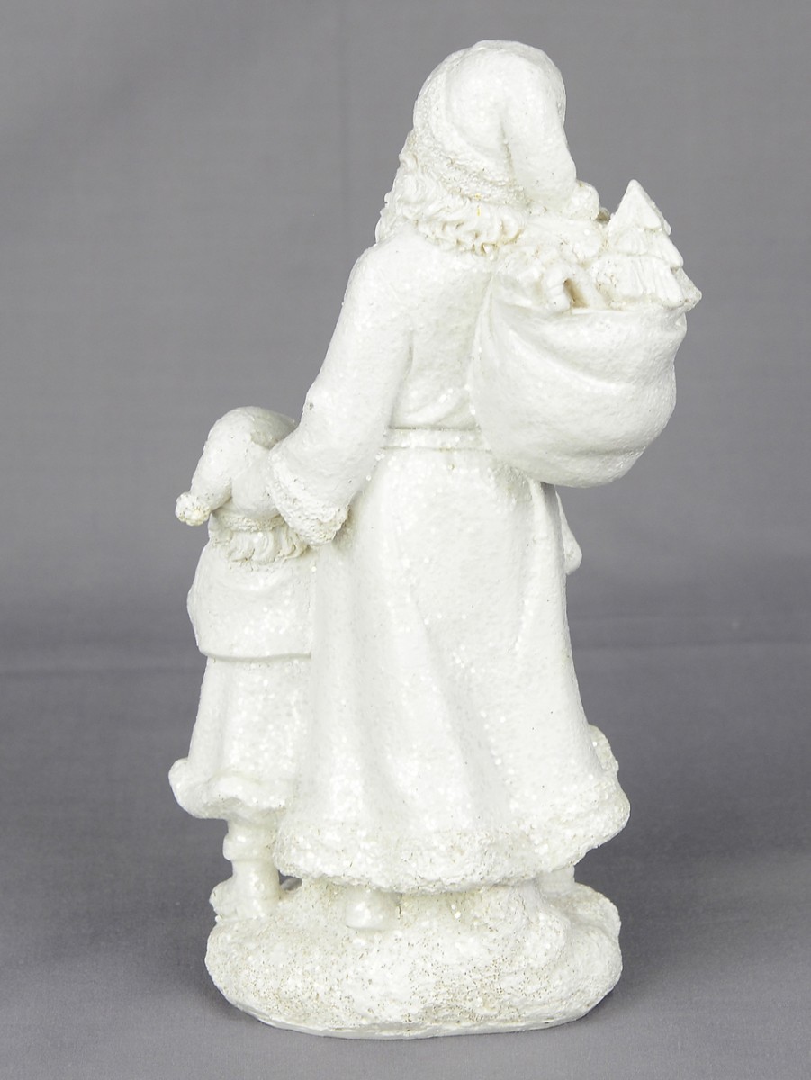 In the White Santa with Child Standing Ornament, we find Santa standing with the sack of toys over his shoulder while the child stands beside with a gift in her hand. It can come as a complement to your Christmas Tree with its snowy look. This innovative product is designed to bring greater festive cheer to your home. This ornament aptly captures the spirit of the season as it sits on your office desk, windowsill, shelf or any other conspicuous spot. Get in the vibe of a Winter Christmas with this decorative piece. You'll have a hard time shelving it for the next year's Christmas