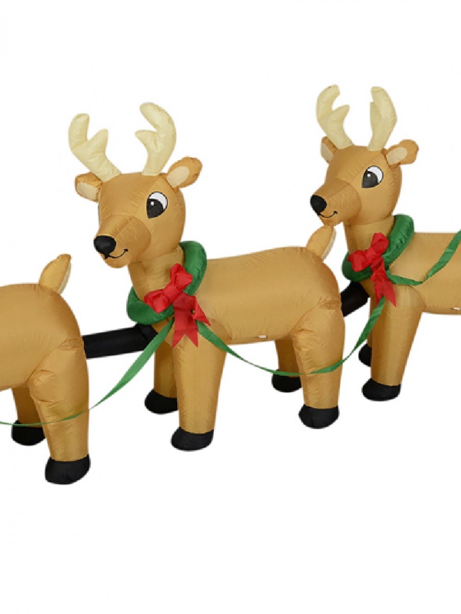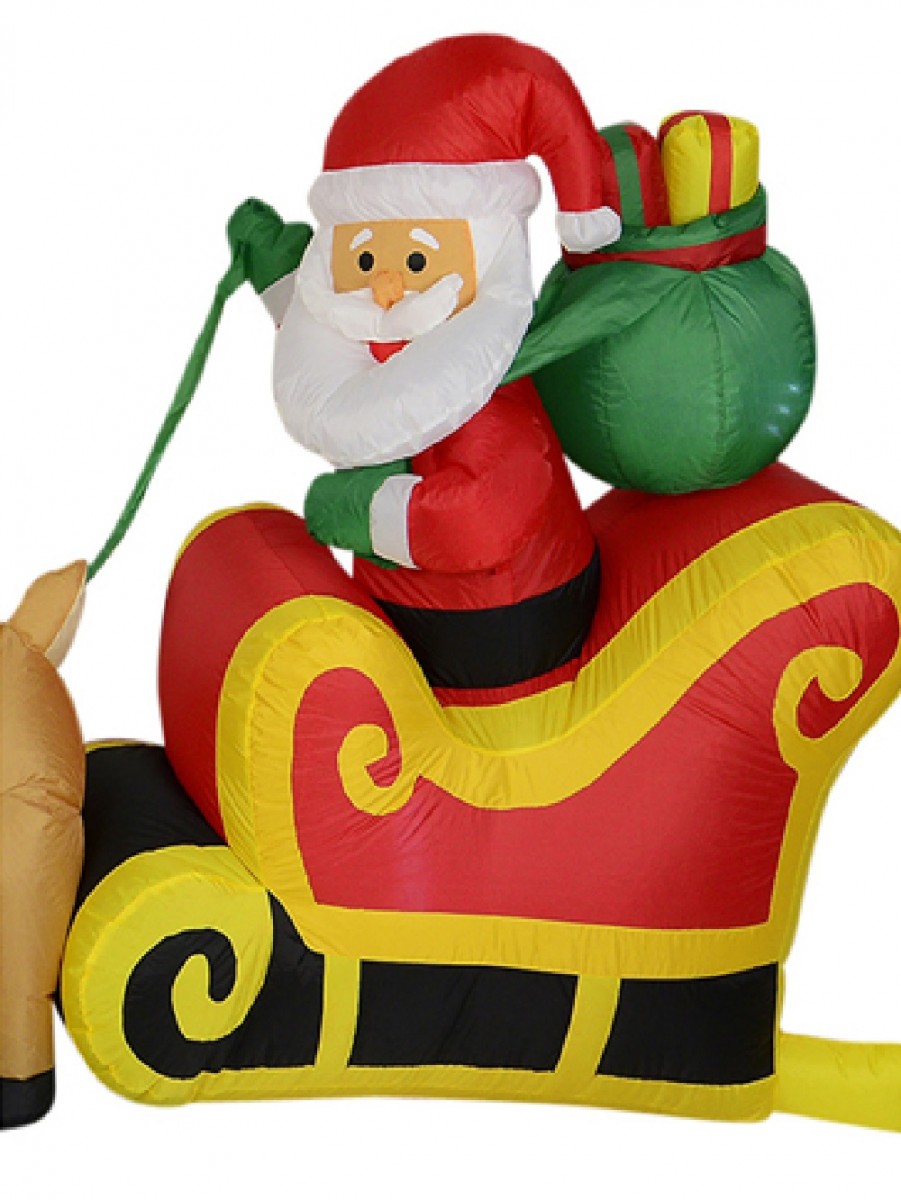 Celebrate the Yuletide spirit with zest by adding our Santa & reindeer Christmas sleigh inflatable to your outdoor display this coming season! Showcasing a waving Santa riding his sleigh with reindeer and holding a bag full of wrapped presents over his shoulder, this jolly and fun inflatable decoration is sure to add some seasonal cheer to any garden or yard.
