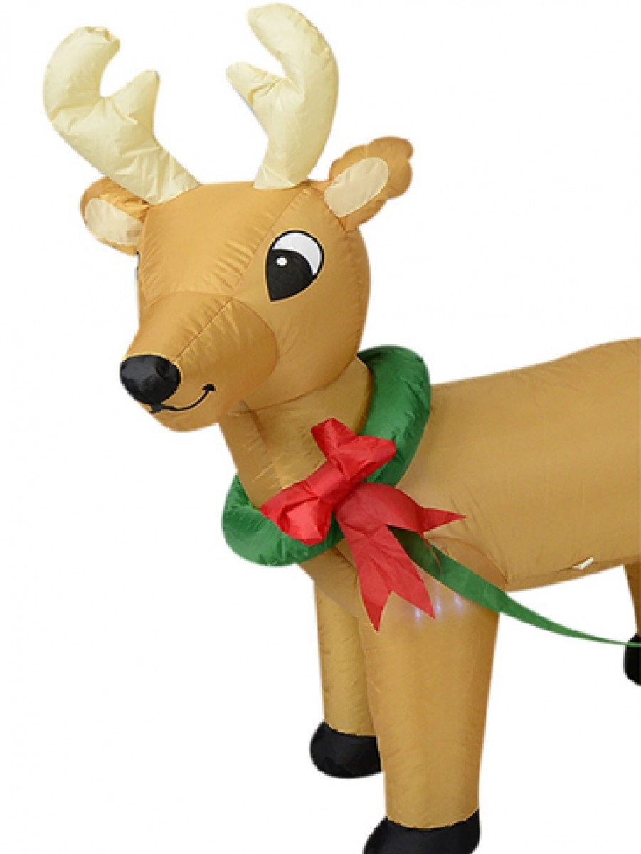 Enjoy the magic of the Christmas season with this fan-powered inflatable that has an internal fan which inflates the display quickly to give your guests a nice warm and festive welcome. The display is illuminated with lights which are one of its best features so the fun does not stop just because it's gone dark! It can be used indoors or outdoors provided it's not raining and the plug is mounted inside or in a waterproof socket. The product dimensions are 3.4m x 48cm x up to 1.3m and it ships worldwide.
